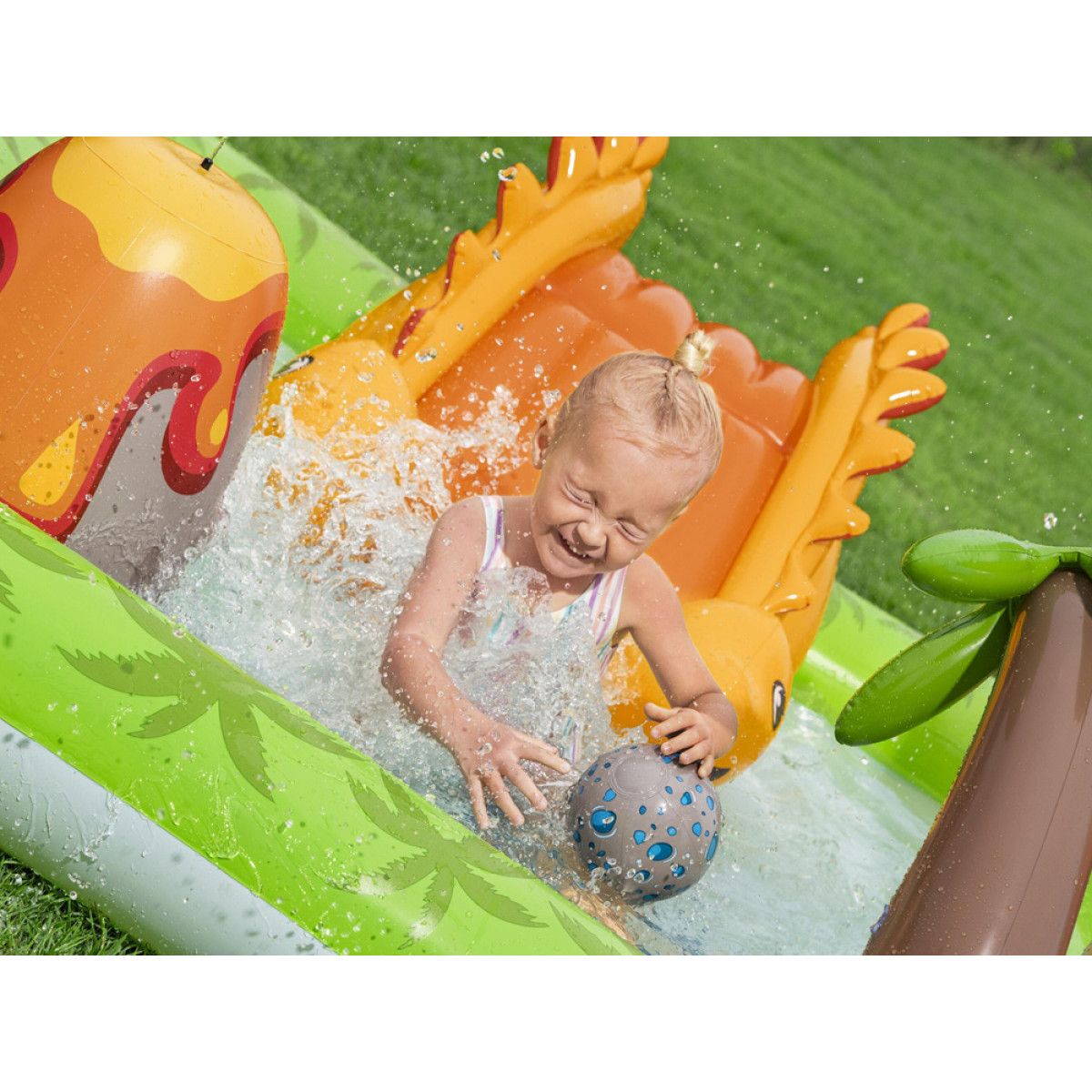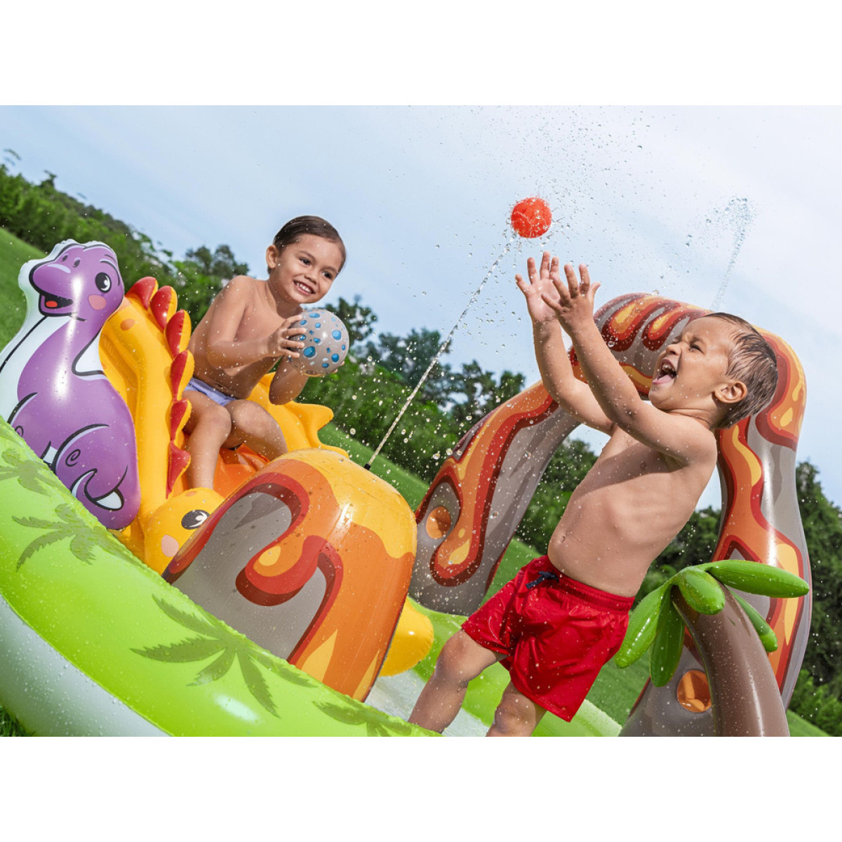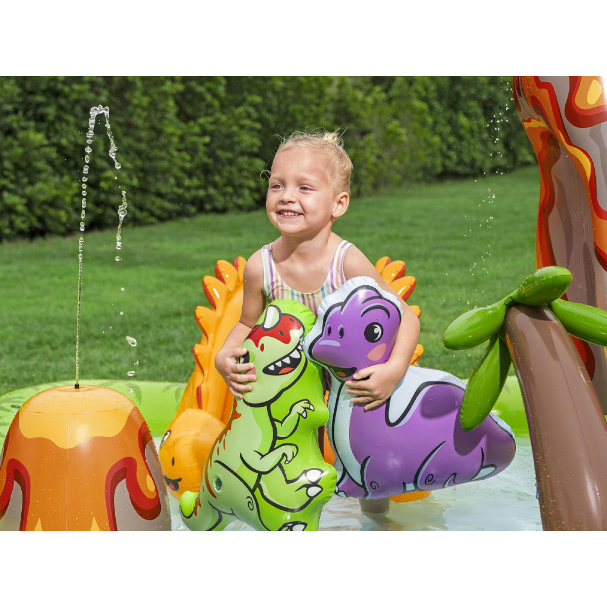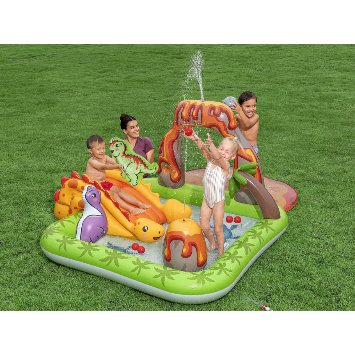 Volcano Springs™ rotaļu centrs ir ideāls risinājums bērniem no 2 gadu vecuma, kas apvieno aktīvas spēles ar atsvaidzinājumu karstās dienās. Šis krāsainais, piepūšamais ūdens rotaļu laukums piedāvā daudzas aktivitātes, kas attīsta bērnu motoriskās prasmes, kustību koordināciju un radošumu. Pateicoties stabilai konstrukcijai un augstas kvalitātes materiāliem, produkts ir drošs un izturīgs, vienlaikus viegli uzstādāms un pārnēsājams.