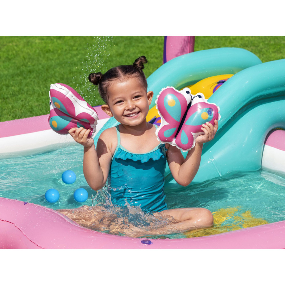 Butterfly Wonder™ rotaļu laukums ir lieliska izvēle vecākiem, kuri vēlas apvienot vasaras ūdens spēles ar bērna fizisko un radošo attīstību, nodrošinot vienlaikus drošību un komfortu lietošanā.