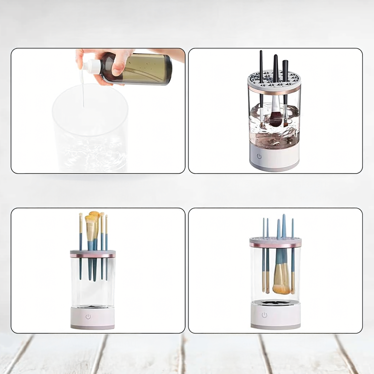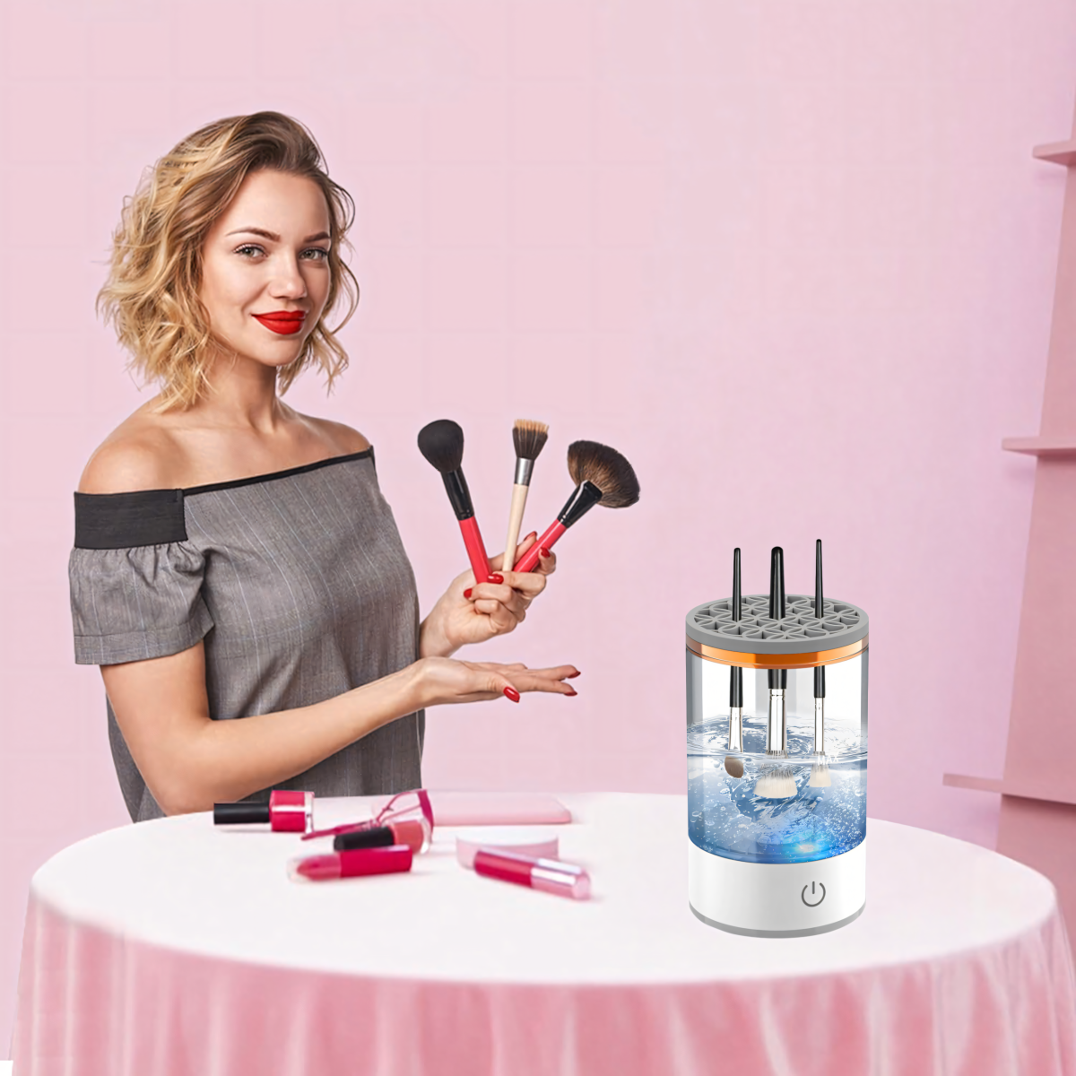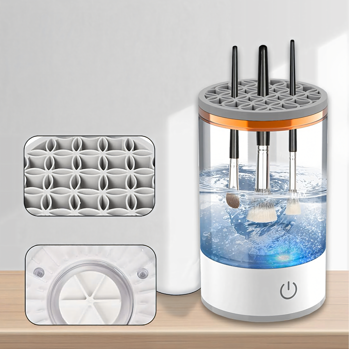 Bezvadu elektriskā kosmētikas otu tīrīšanas ierīce ir uzticama 3-in-1 ierīce, kas tīra, žāvē un uzglabā otas. Pateicoties 7000 apgriezieniem minūtē, tā rūpīgi noņem kosmētikas atlieku, netīrumus un baktērijas, ietaupot jūsu laiku un rūpējoties par higiēnu. Ideāli piemērota ikvienam, kas vēlas baudīt perfektu grimu un veselīgu ādu.