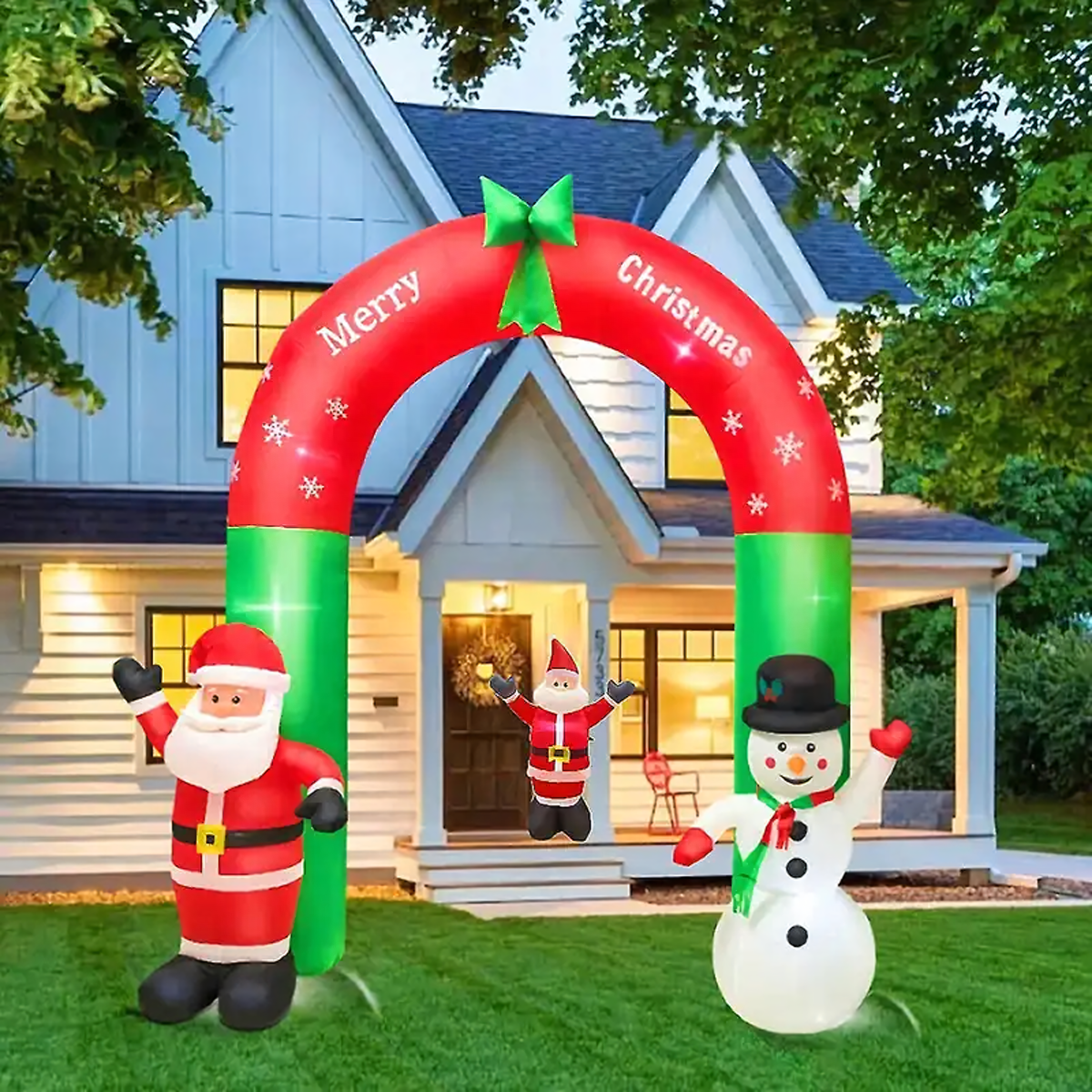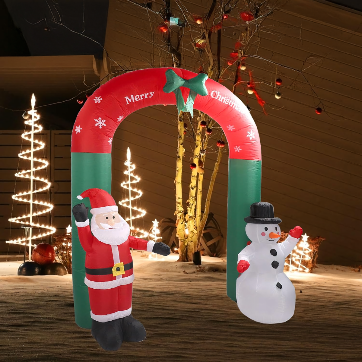 Vēlaties, lai jūsu Ziemassvētku dekorācijas būtu izcilas? Izvēlieties iespaidīgo piepūšamo arku ar Salaveci un Sniegavīru, kas piesaista uzmanību un rada neticamu atmosfēru! Ar augstumu līdz 240 cm, integrētu LED apgaismojumu un automātisku piepūšanu – sezonas hits!