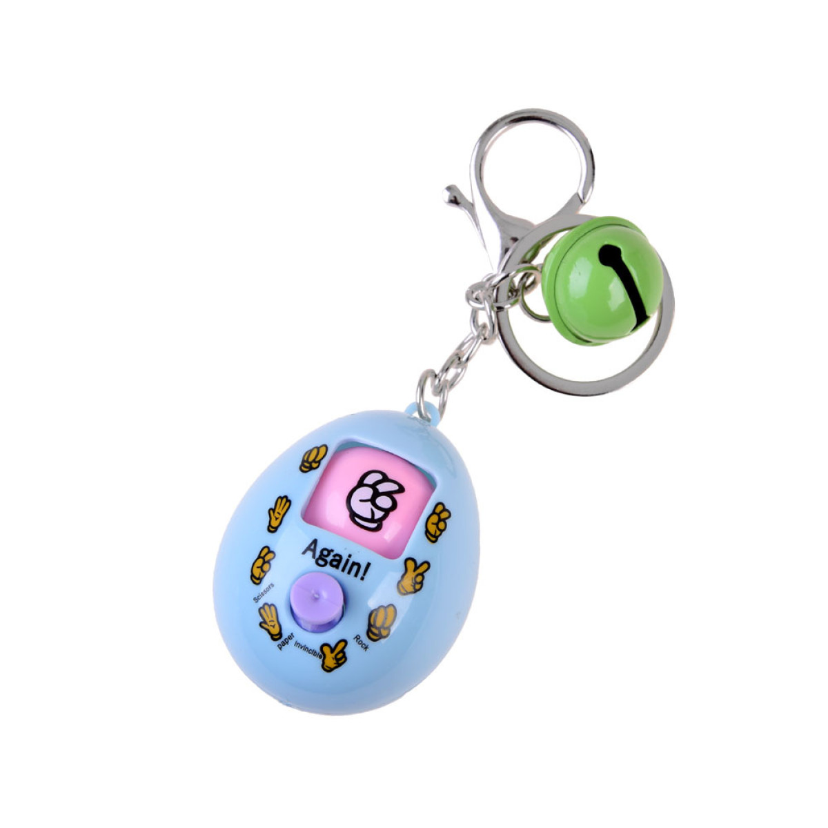 Krāsains piekariņš olas formā ar spēli lieliski derēs skolas somai vai rokassomai. Piekariņā ir iebūvēta populārā spēle "akmens, papīrs, šķēres". Vienkārši nospiediet pogu, un rotējošā roka parādīs izvēlēto zīmi. Gadžets ir lielisks pavadonis, gaidot autobusu vai slēdzot derības ar draugiem.