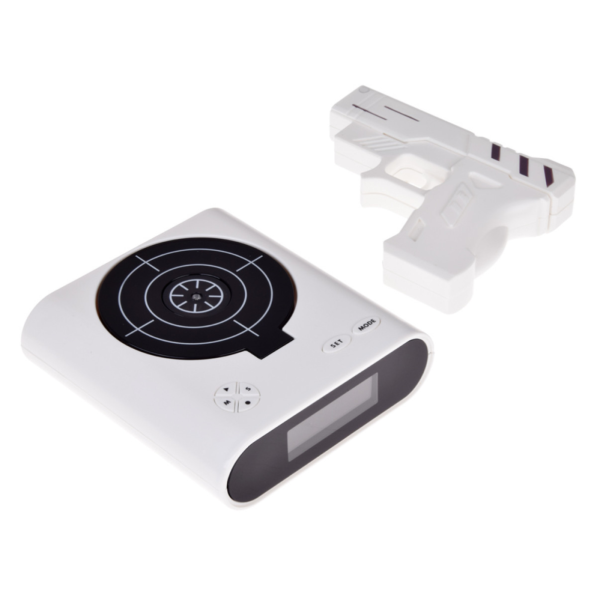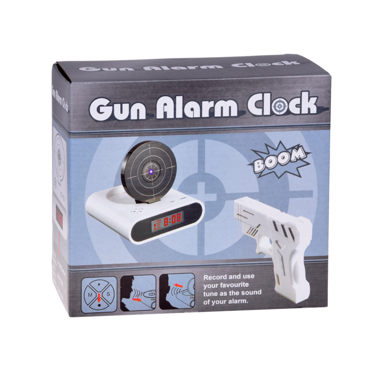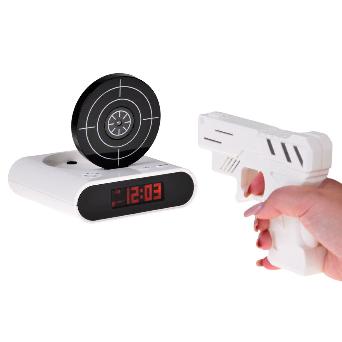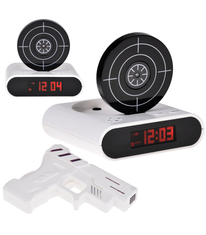 Ja rīta celšanās jums ir kā murgs, tad modinātājs ar pistoli var būt lieliska izvēle. Cik bieži esat mēģinājis klusēt modinātāju, metot uz tā kaut ko? Ar šo modinātāju tas ir pagātne. Vienkārši mērķējiet ar pistoli uz mērķi, un modinātājs pārstās skanēt!