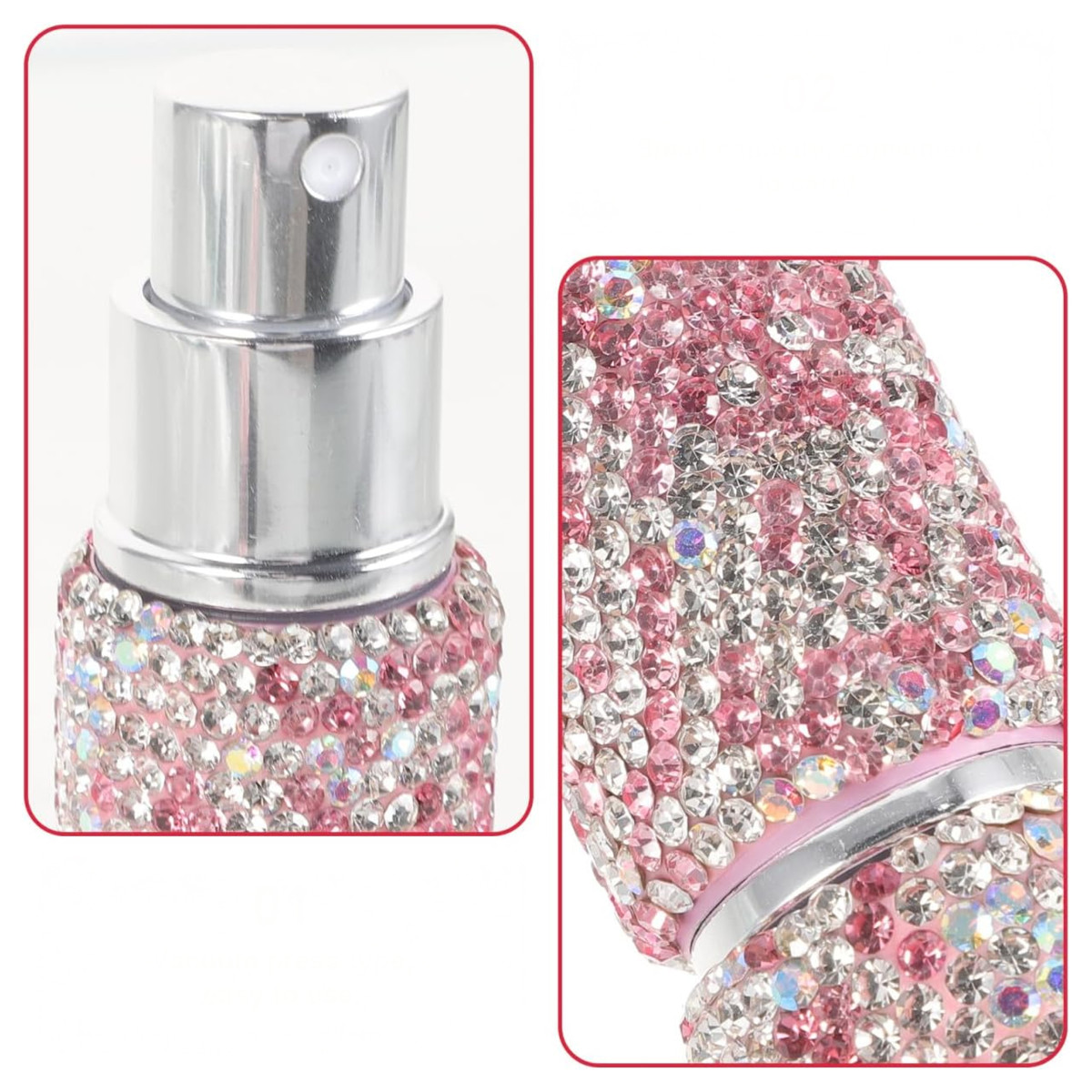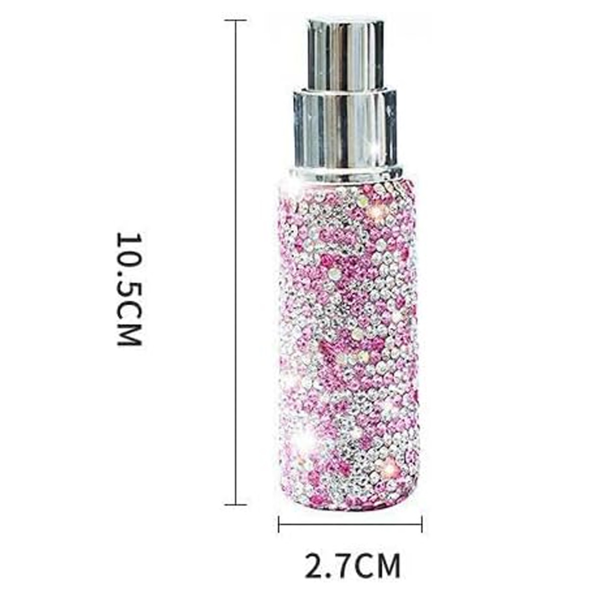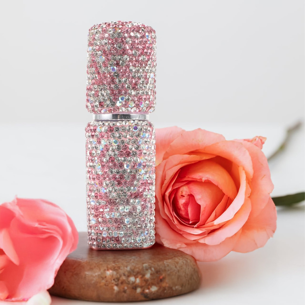 Parfimērijas pudelīte 10 ml ar spīdīgiem kristāliem, kas ir atkārtoti uzpildāma – ideāla ceļošanai, rokassomiņai un dāvanai.