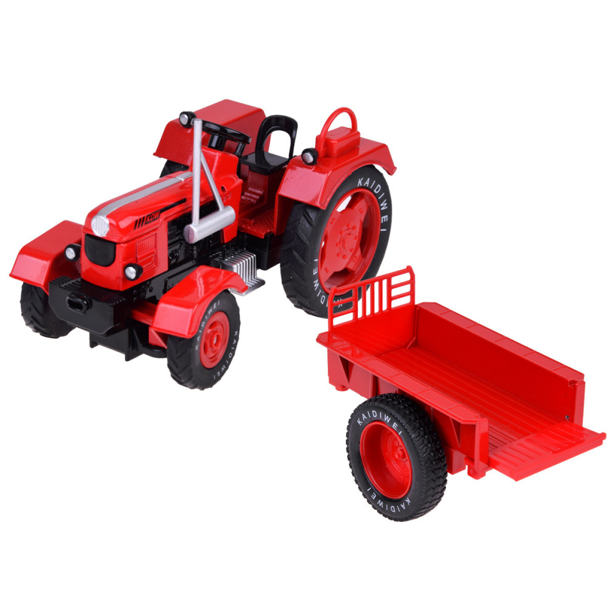 - Traktoram pievienota piekabe, kuru var pievienot transportlīdzeklim, ļaujot pārvadāt nelielas kravas, piemēram, rotaļlietas, klucīšus vai citus sīkus priekšmetus. Tas padara spēli daudzveidīgāku un attīsta bērna iztēli, ļaujot atdarināt ikdienas dzīves ainas uz fermas.