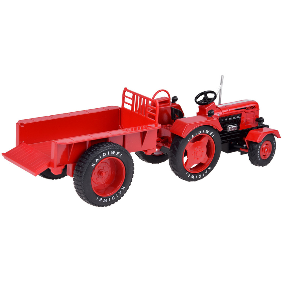 Metāla sarkanais traktors ar piekabi 1:18