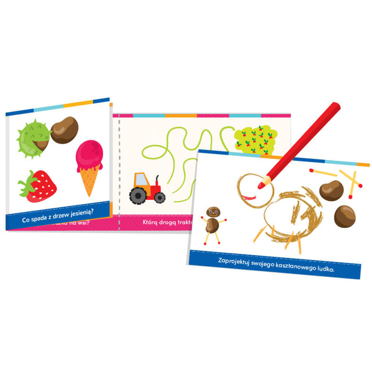 Pastāstiet bērnam, kas redzams ilustrācijās. Tas ir lielisks veids, kā paplašināt vārdu krājumu. Laiks radošiem uzdevumiem! Esiet pacietīgi: ļaujiet bērnam izbaudīt radošu spēli, iziet ārpus līnijām, eksperimentēt ar krāsām, veidot savas idejas zīmēšanai. Izlasiet norādījumus un parādiet, kā risināt uzdevumus. Noplēšot zīmēšanas lapas, izveidojas neliela attēlu grāmatiņa. Unikālus bērna zīmējumus no noplēstām lapām var saglabāt kā piemiņu. Ilustrācijas un forma ir piemērota bērna vecumam. Komplektā iepakots oriģināls, krāsains iepakojums, kas būs lieliska dāvana. Jokomisiada veikals piedāvā plašu izglītojošu grāmatu un mīklu izvēli bērniem. Grāmata izstrādāta un ražota Polijā.