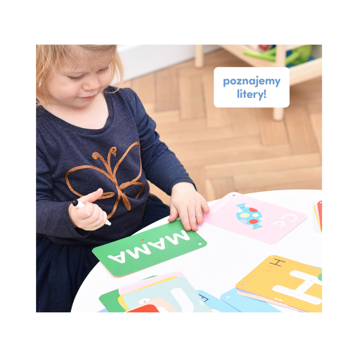 - kartītes un dzēšamais marķieris ļauj rakstīt un dzēst atkārtoti