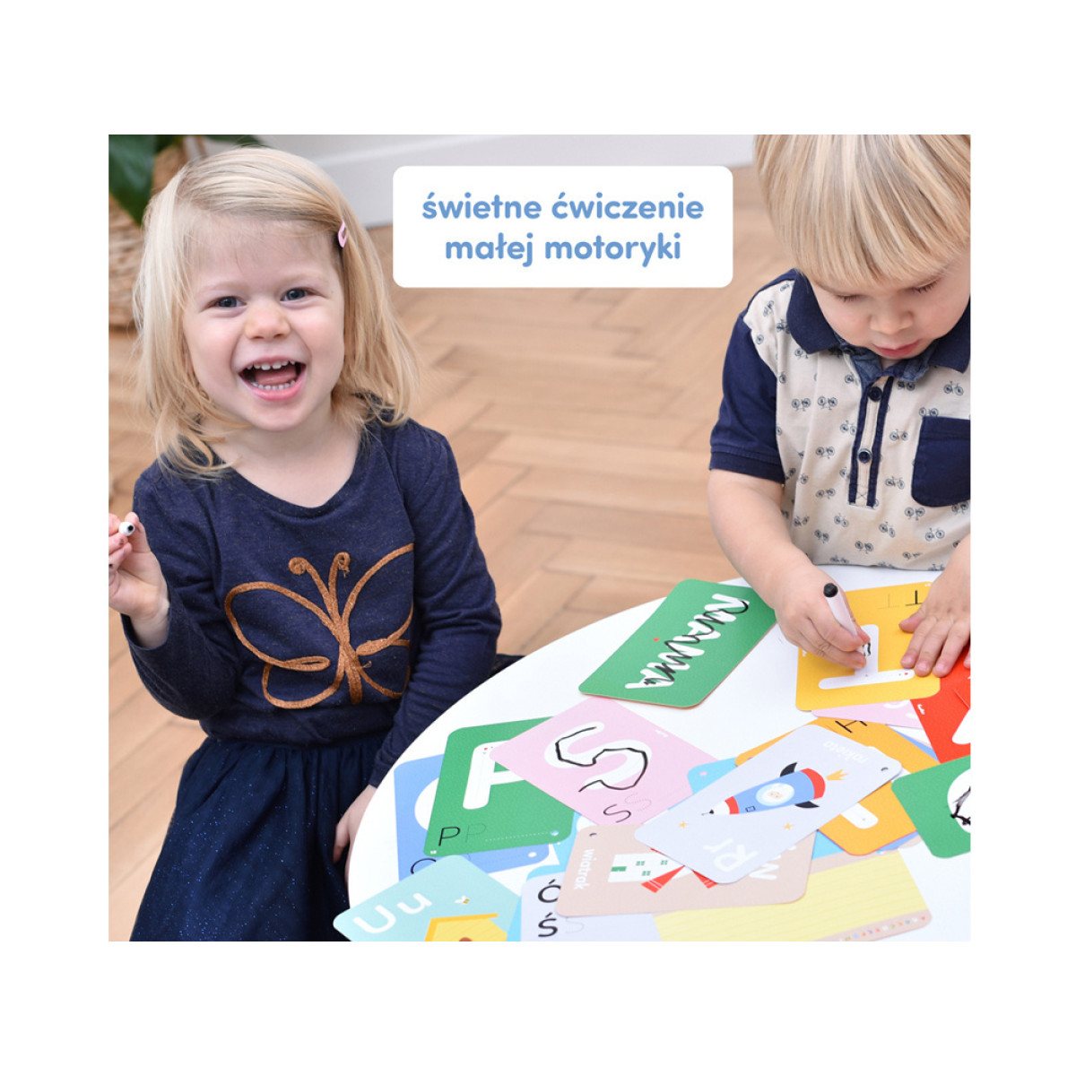 Izglītojošais komplekts ietver grāmatiņu ar aizraujošiem grafomotorikas vingrinājumiem un burvju marķieri. Krāsainās un jautrās ilustrācijas iedvesmo bērnus zīmēt un mēģināt pirmos rakstīšanas soļus. Īpašās kartītes ļauj zīmēt un dzēst atkārtoti. Komplektā iekļauta arī rokasgrāmata vecākiem ar informāciju par bērnu grafomotorisko attīstību un spēļu idejām.
