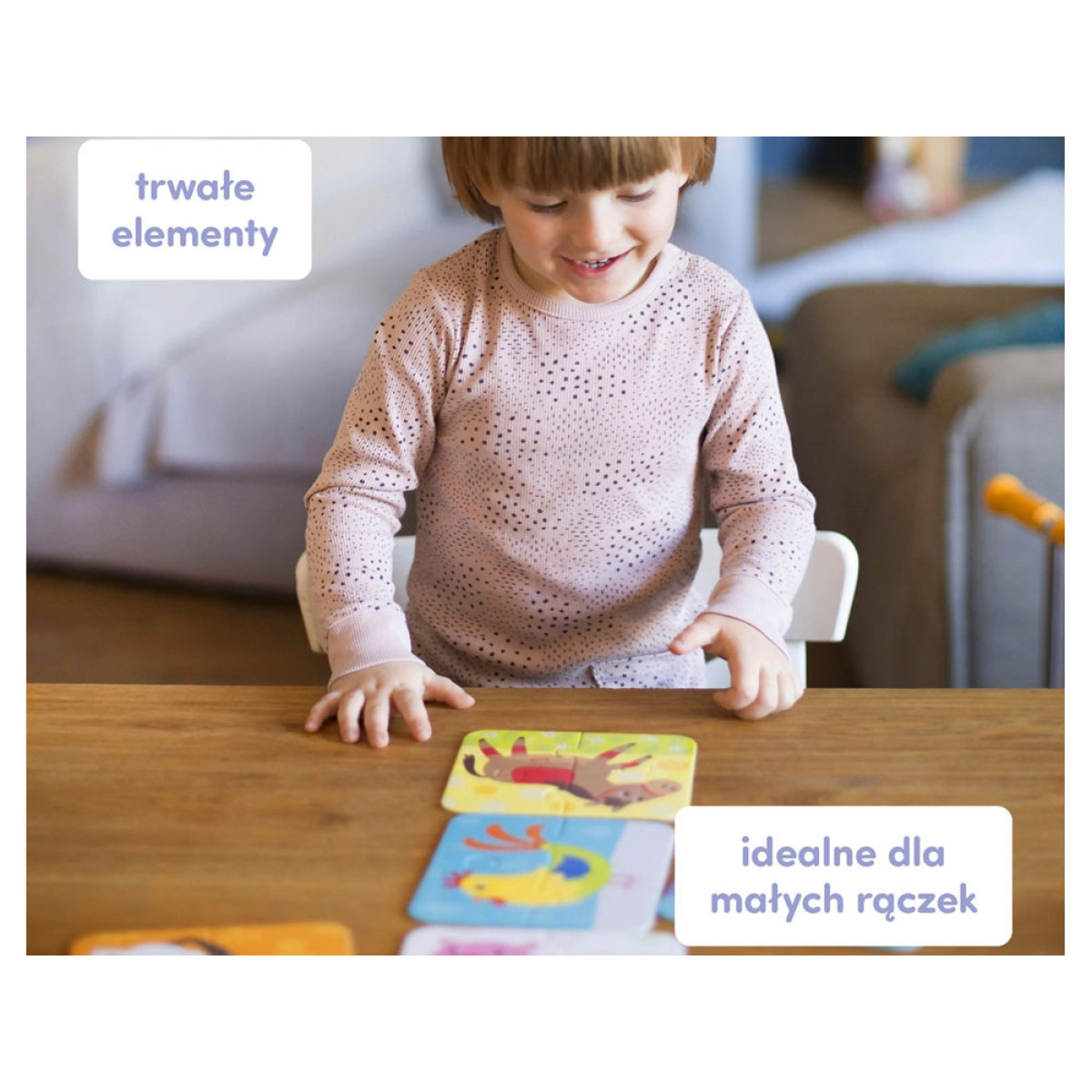 Ilustrācijas un forma ir pielāgotas bērna vecumam. Puzles likšana ir attīstoša izklaide un veids, kā kopā atklāt pasauli.