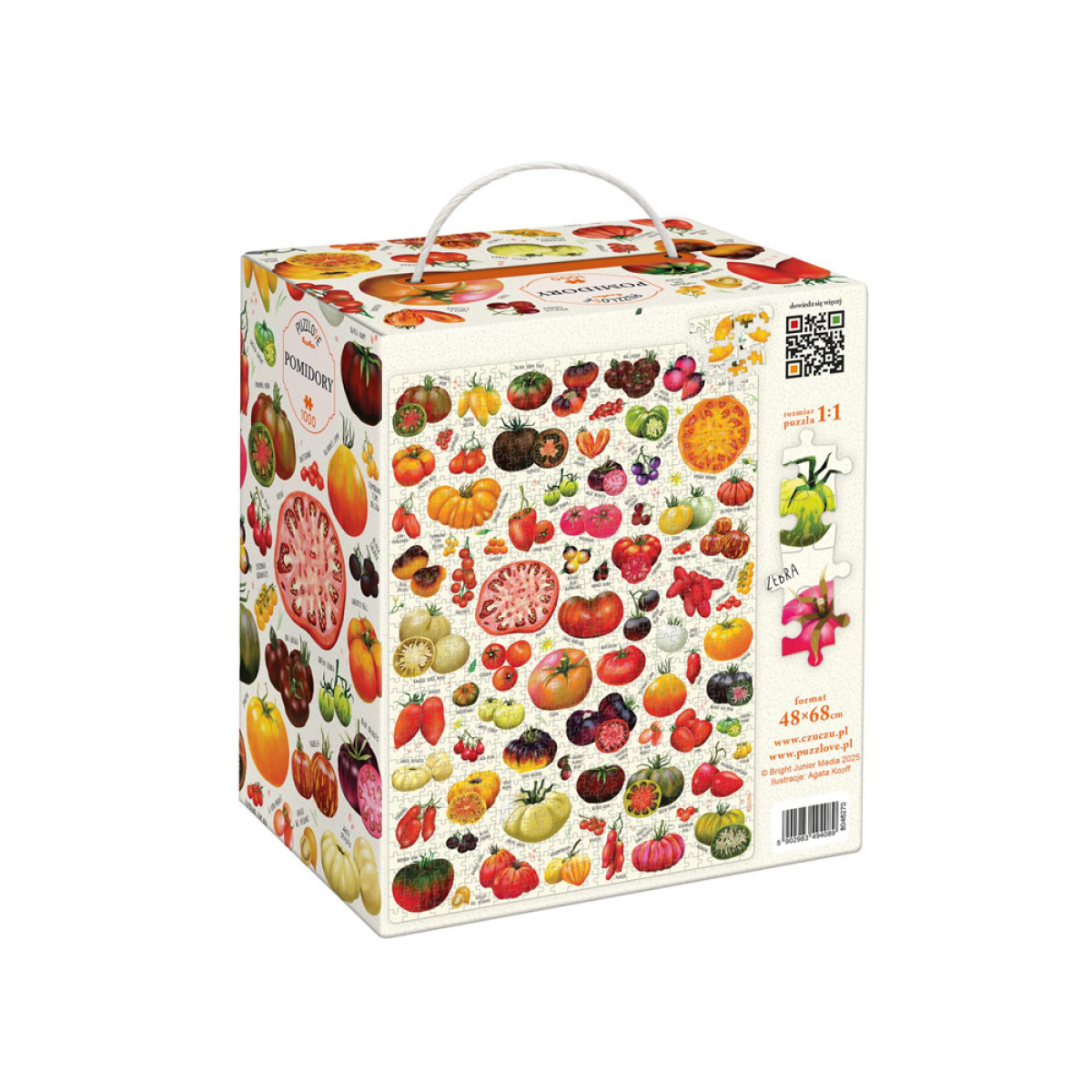 Sulīgu puzlu sezona tieši no krūma! Atklāj dažādu tomātu šķirņu pasauli 1000 gabalos! Šī lielā puzle ļauj izveidot iespaidīgu ilustrāciju, kas atgādina vasaras smaržas jebkurā gada laikā. Puzļu likšana ir ne tikai relaksācija, bet arī izaicinājums prātam un lieliska atmiņas, novērošanas un loģiskās domāšanas treniņa metode.