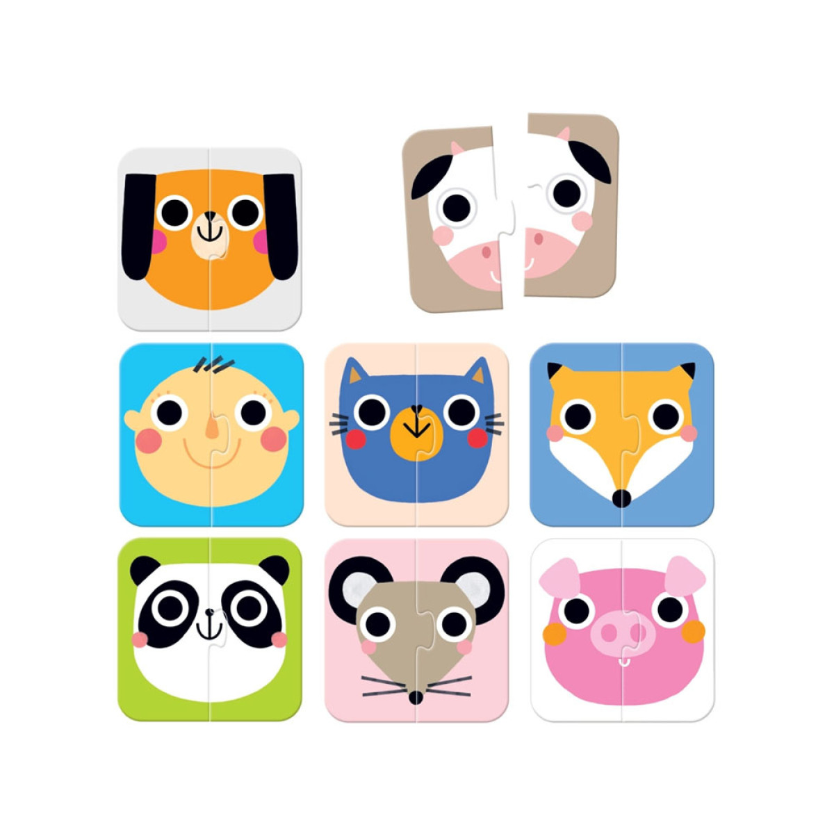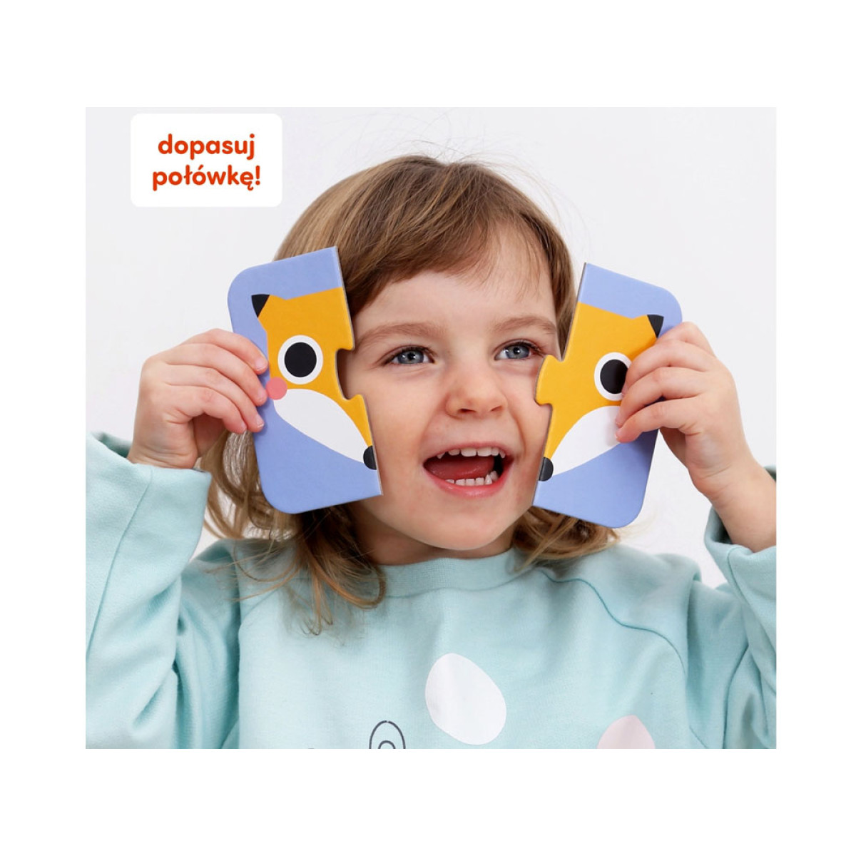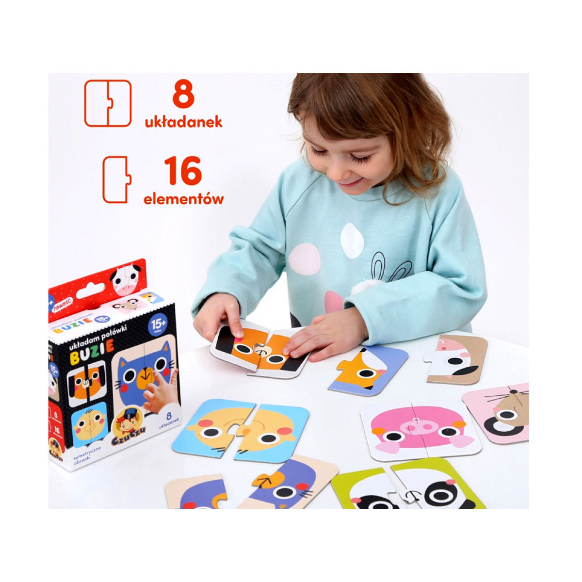 Viena pusīte, otra pusīte... Kura tā ir galviņa? Edukācijas divdaļīgas puzles ir lieliski piemērotas kā pirmās puzles mazajiem bērniem.