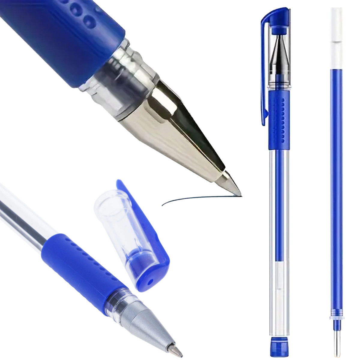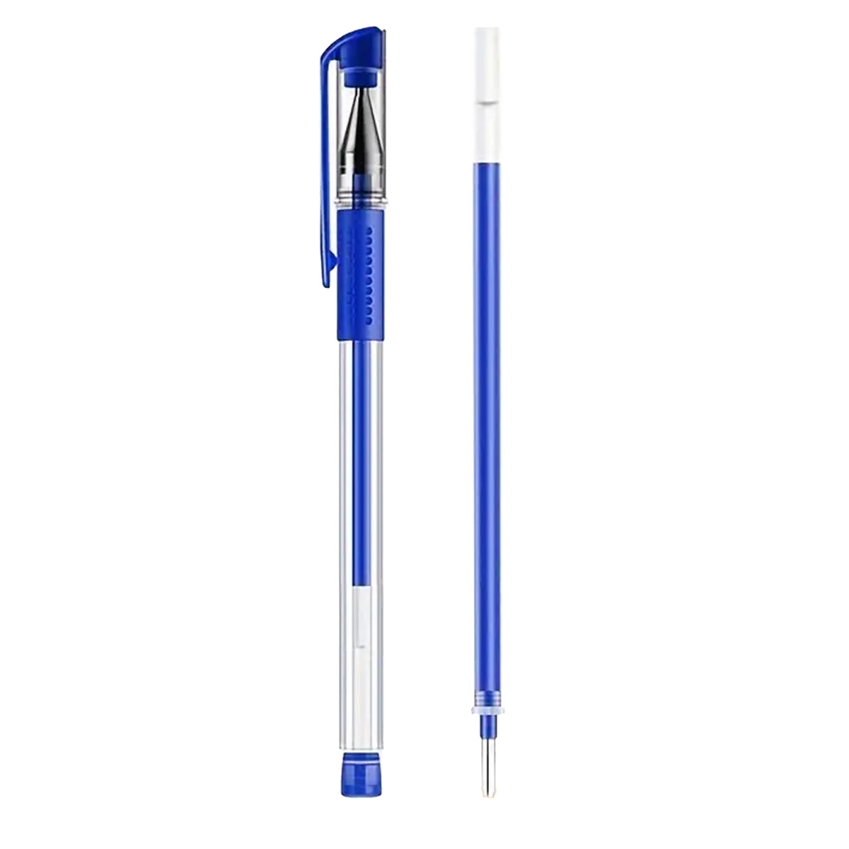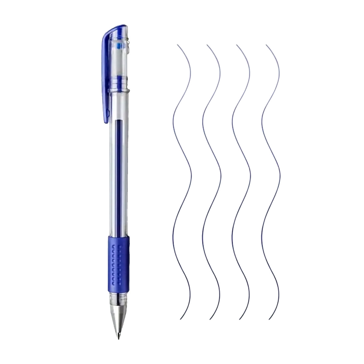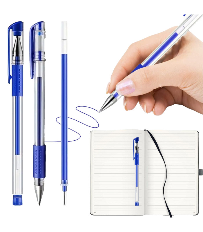 Klasiska gēla pildspalva ar caurspīdīgu korpusu, kas ļauj kontrolēt tintes līmeni.