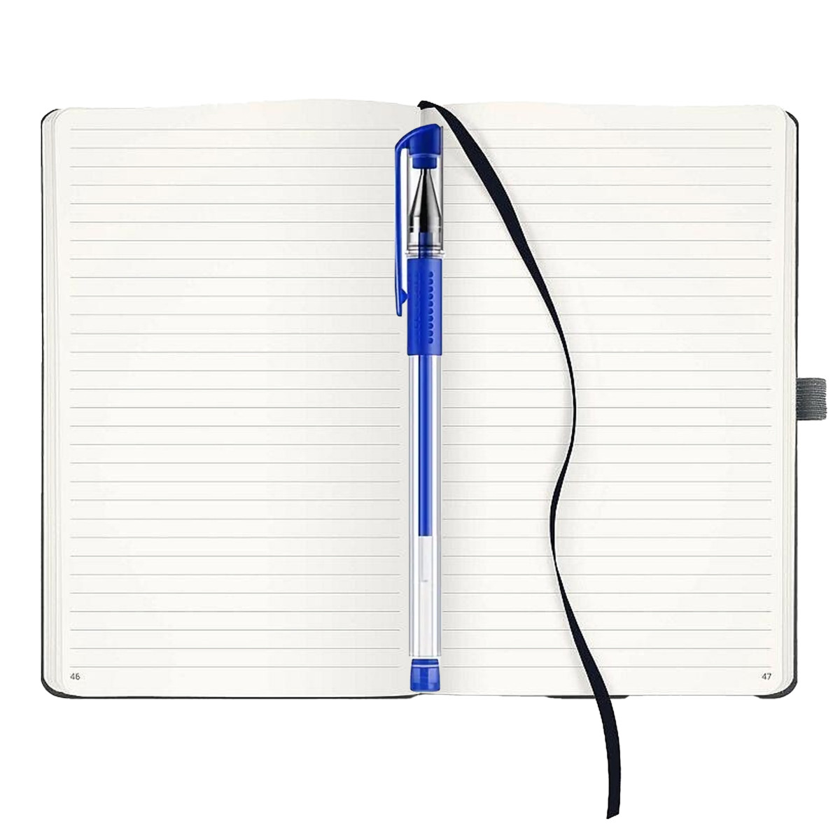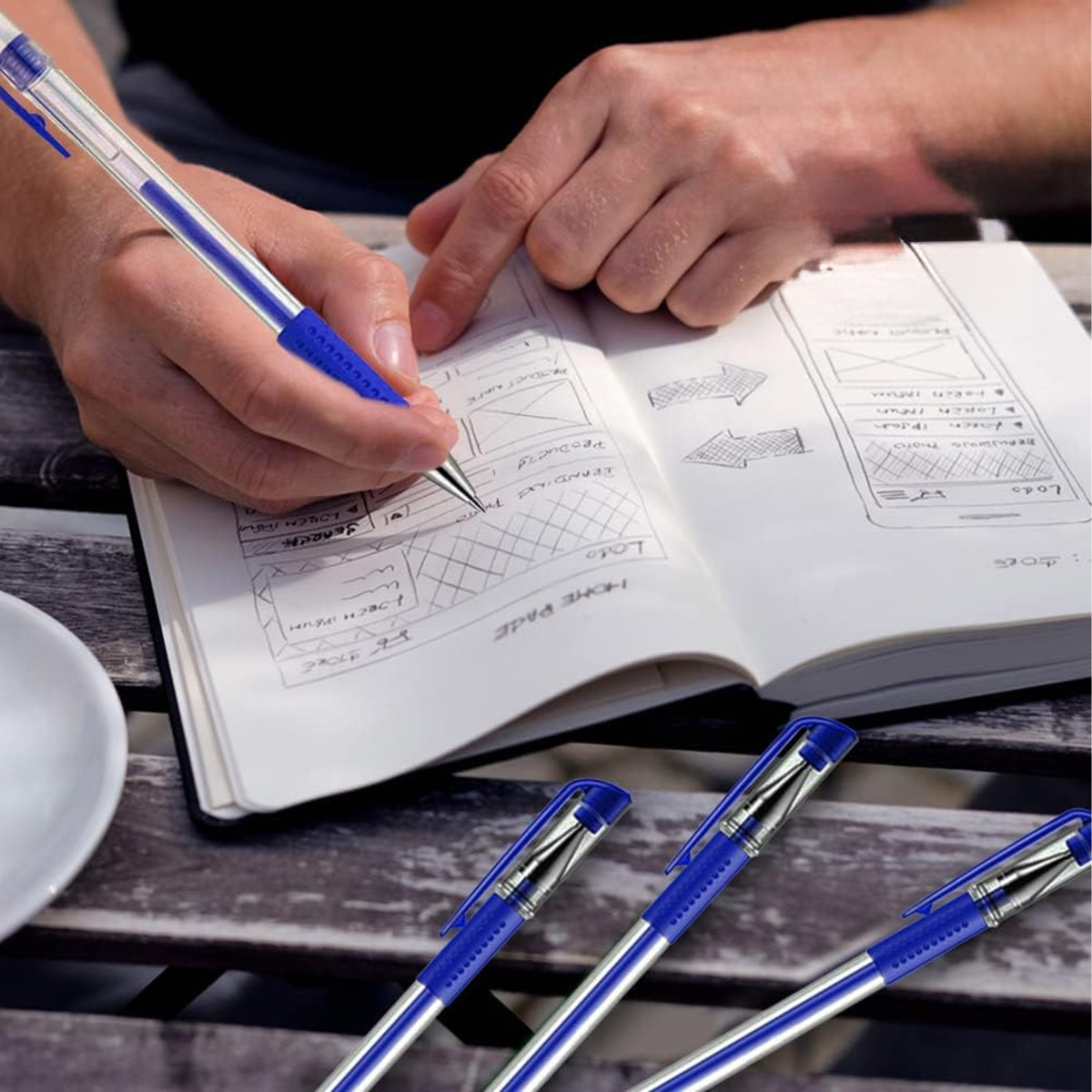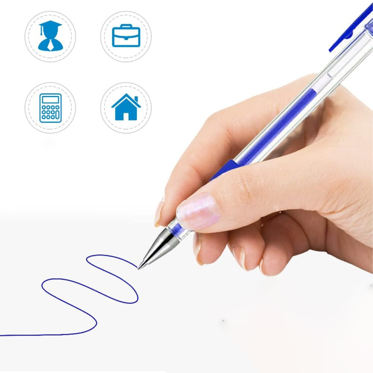 Klasiska gēla pildspalva ar caurspīdīgu korpusu, kas ļauj kontrolēt tintes līmeni.