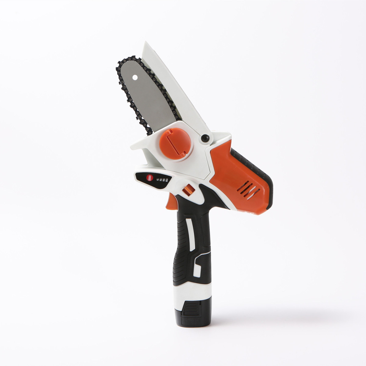 Mini akumulatora ķēdes zāģis ir ideāli piemērots dārzkopībai un koksnes, kā arī zaru griešanai.