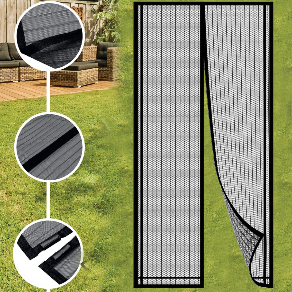 Piekarināms moskītu tīkls, kas sastāv no divām daļām, savienots ar magnētiskiem āķiem. Var apgriezt līdz mazākiem izmēriem. Komplektā ietilpst pašlīmējošs Velcro moskītu tīkla montāžai - 15 gab.