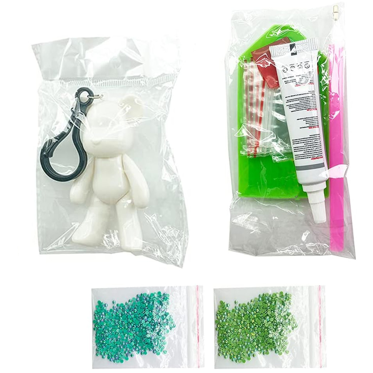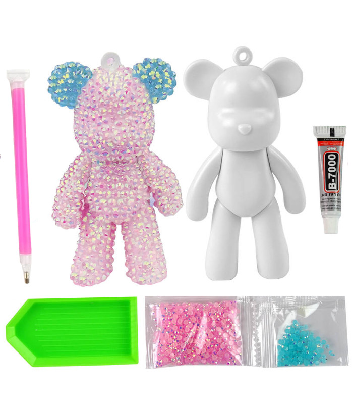 Komplektā ir iekļauts arī stienis dimantu uzklāšanai, kas atvieglo precīzu kristālu novietošanu uz lācīša figūriņas.