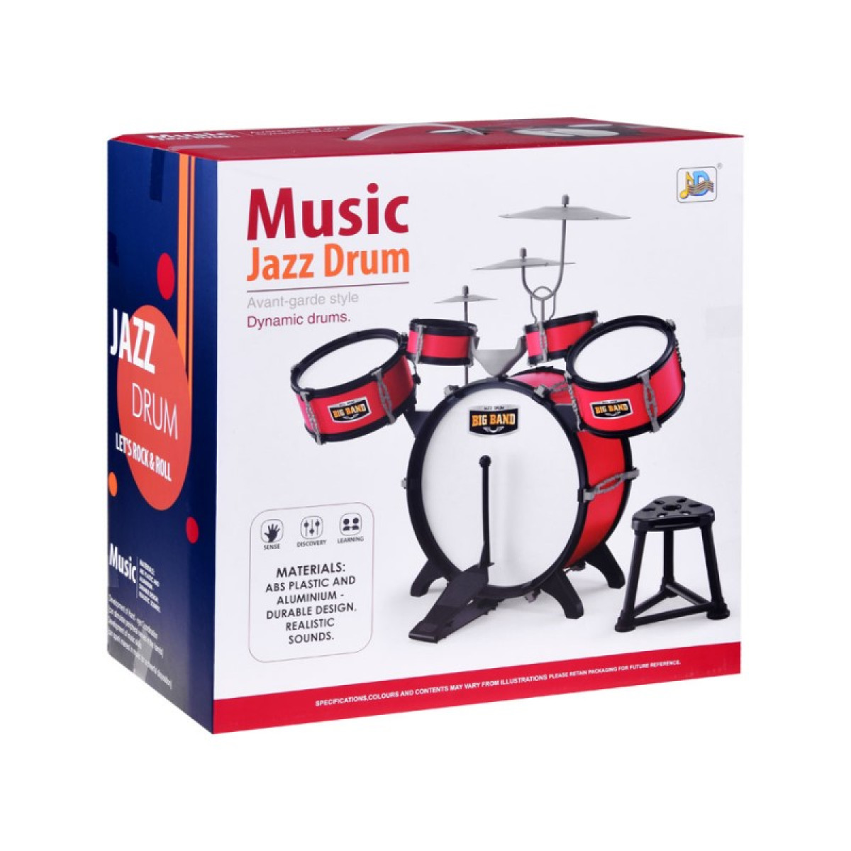Didelis penkių būgnų rinkinys yra puikus pasirinkimas mažam muzikantui. Būgnų rinkinyje yra penki būgnai, trys cimbolai, dvi lazdos ir kėdė. Tikroviški būgnai tikrai atitiks jauno muzikanto reikalavimus. Būgnai padės vaikui lavinti muzikinius įgūdžius, ritmo pojūtį ir pozityviai naudoti energiją. Surinkus rinkinį, visas dydis yra 59 cm aukščio ir 77 cm pločio.