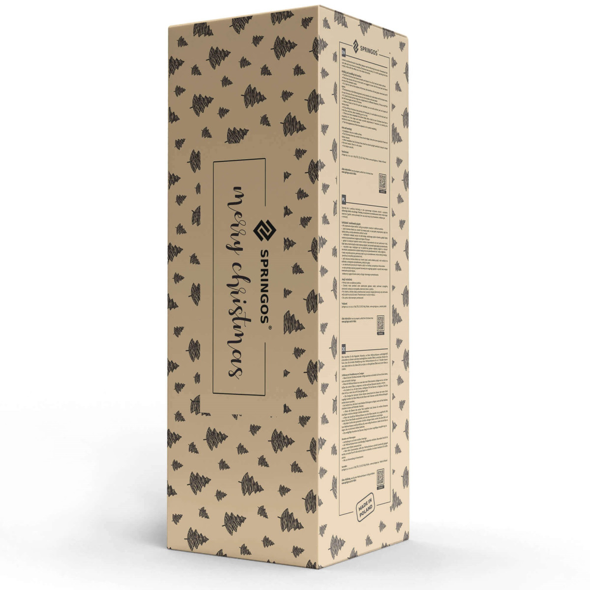 Pamatdati: Zīmols: Springos® Egles veids: dabīga egle Kopējais augstums (mērīts no zemes): 240 cm Adatu materiāls: ekoloģiska plēve, PE Adatu krāsa: zaļa Stiprinājuma veids: četrzars Vainags: Kopējais augstums (mērīts no zemes): 240 cm Maksimālais platums (mērīts platākajā vietā): aptuveni 142 cm Platums apmēram 1 m augstumā: aptuveni 110 cm Virsotnes garums: 32 cm Līmeņu skaits: 16 + virsotne Zaru skaits: 99 Zaru galotņu (tips) skaits: 994 Zaru galotņu platums (atsevišķām zarniņām): 3 cm Attālums no zemes līdz vainaga sākumam: 37 cm Zaru gali: smaili Elementu skaits, no kuriem veidots vainags: 3 Stiprinājums: Materiāls: metāls Veids: četrzars Krāsa: tumši zaļa Augstums: 17 cm Vienas kājas garums: 28 cm Attālums starp kājām (mērīts galos): 41–46 cm Papildus informācija: Iepakojuma izmēri: 120 × 40 × 40 cm Ļoti reālistisks izskats Divkrāsaina plēve – zaļa un brūna, imitē īstu zaru Svarīgi: lai sasniegtu vēlamo efektu, zari rūpīgi jāizklāj un jānoformē Izmēru tolerances: ±2 % Konstrukcija smaga / rūpīgi izgatavota Zari biezāki un kupli Produkts paredzēta pašizmontāžai Salikšanas instrukcija pieejama elektroniski, izmantojot QR kodu uz iepakojuma