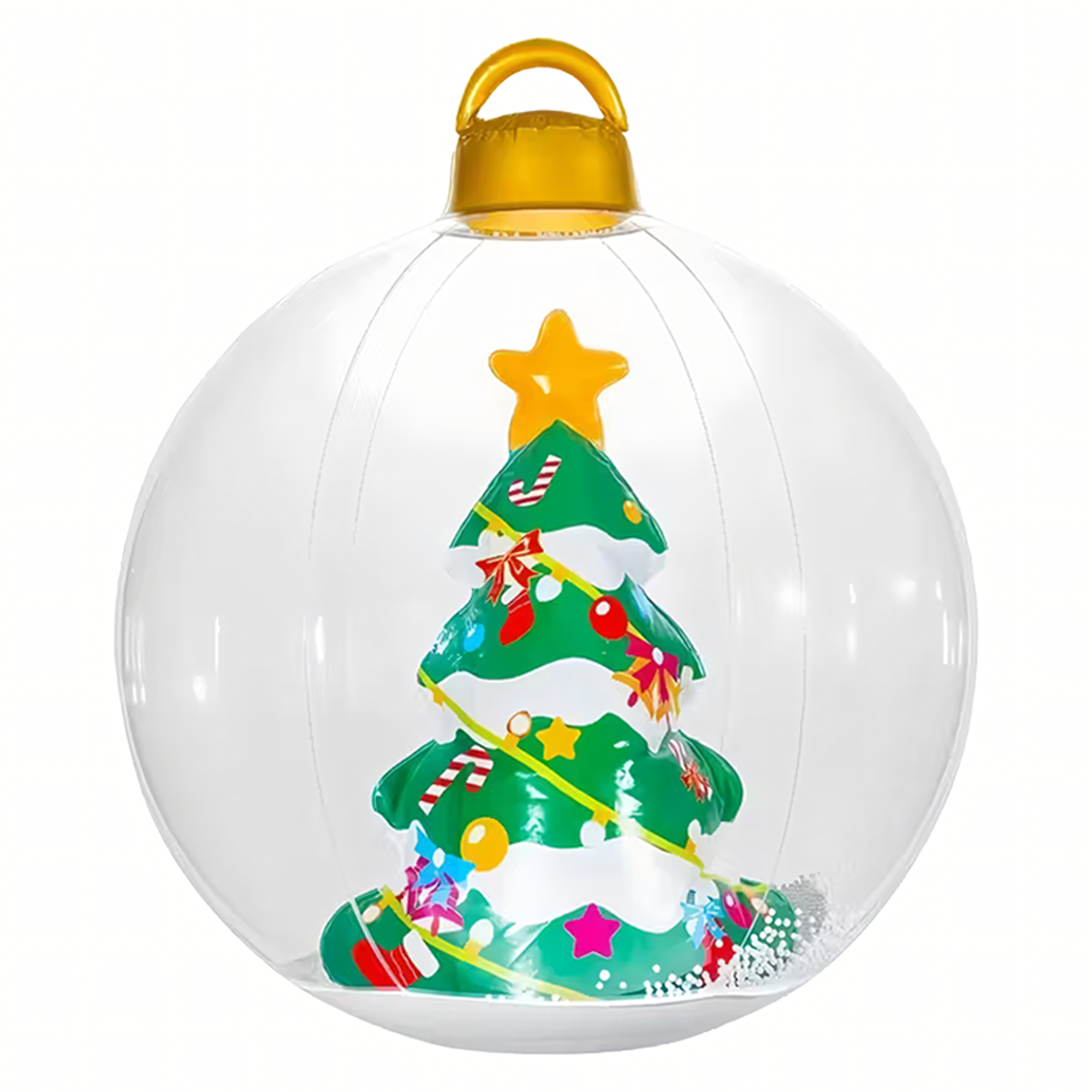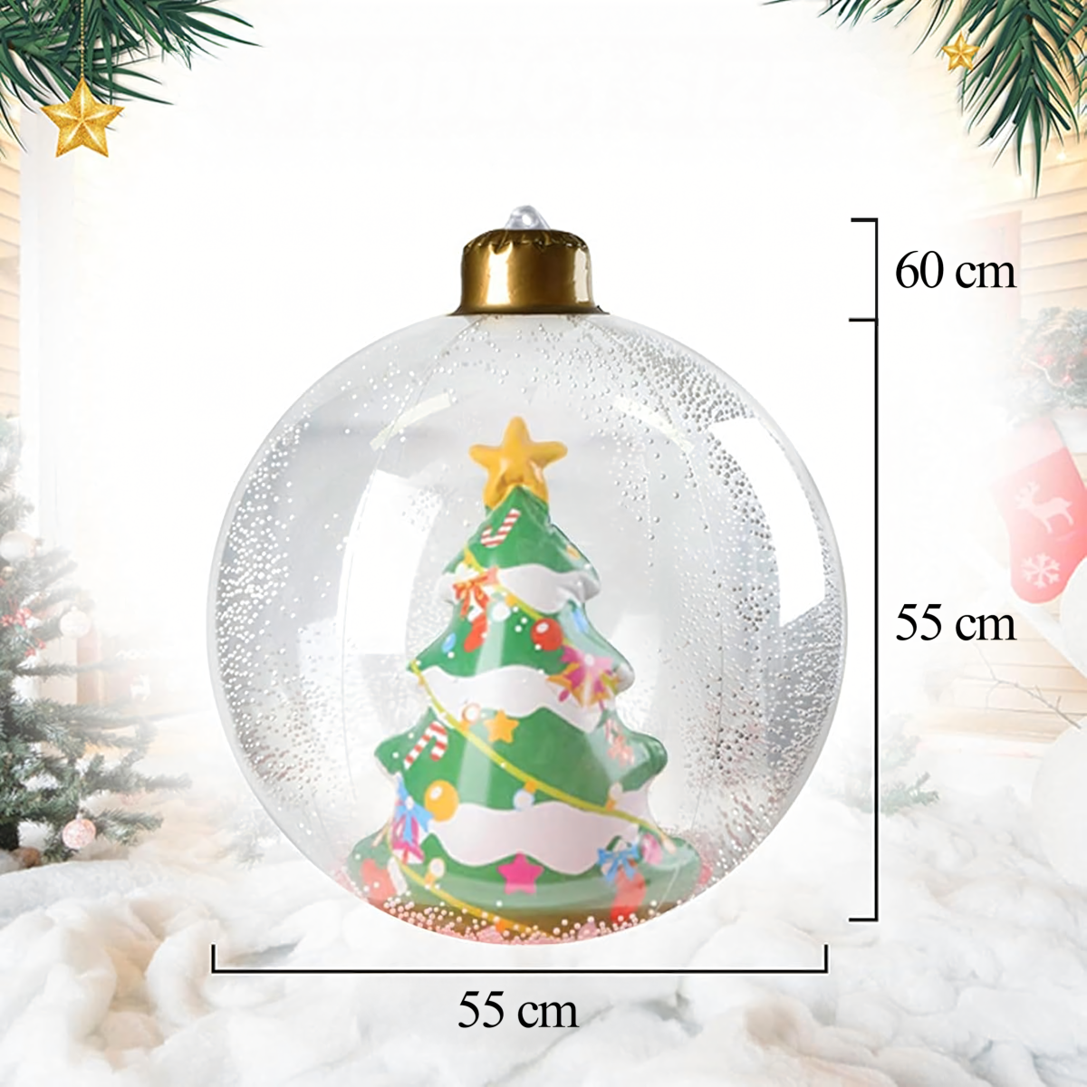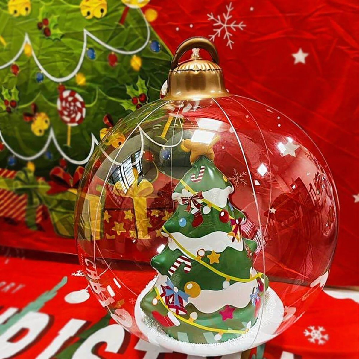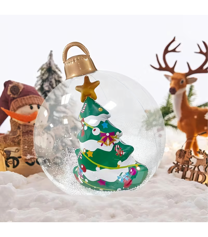 Uppūšamā Ziemassvētku bumba ir unikāla dekorācija, kas piešķirs jūsu mājai un dārzam maģisku Ziemassvētku atmosfēru. Izgatavota no izturīga PVC materiāla, noturīga pret laikapstākļu ietekmi un piemērota atkārtotai lietošanai – ideāla Ziemassvētku svinībām!