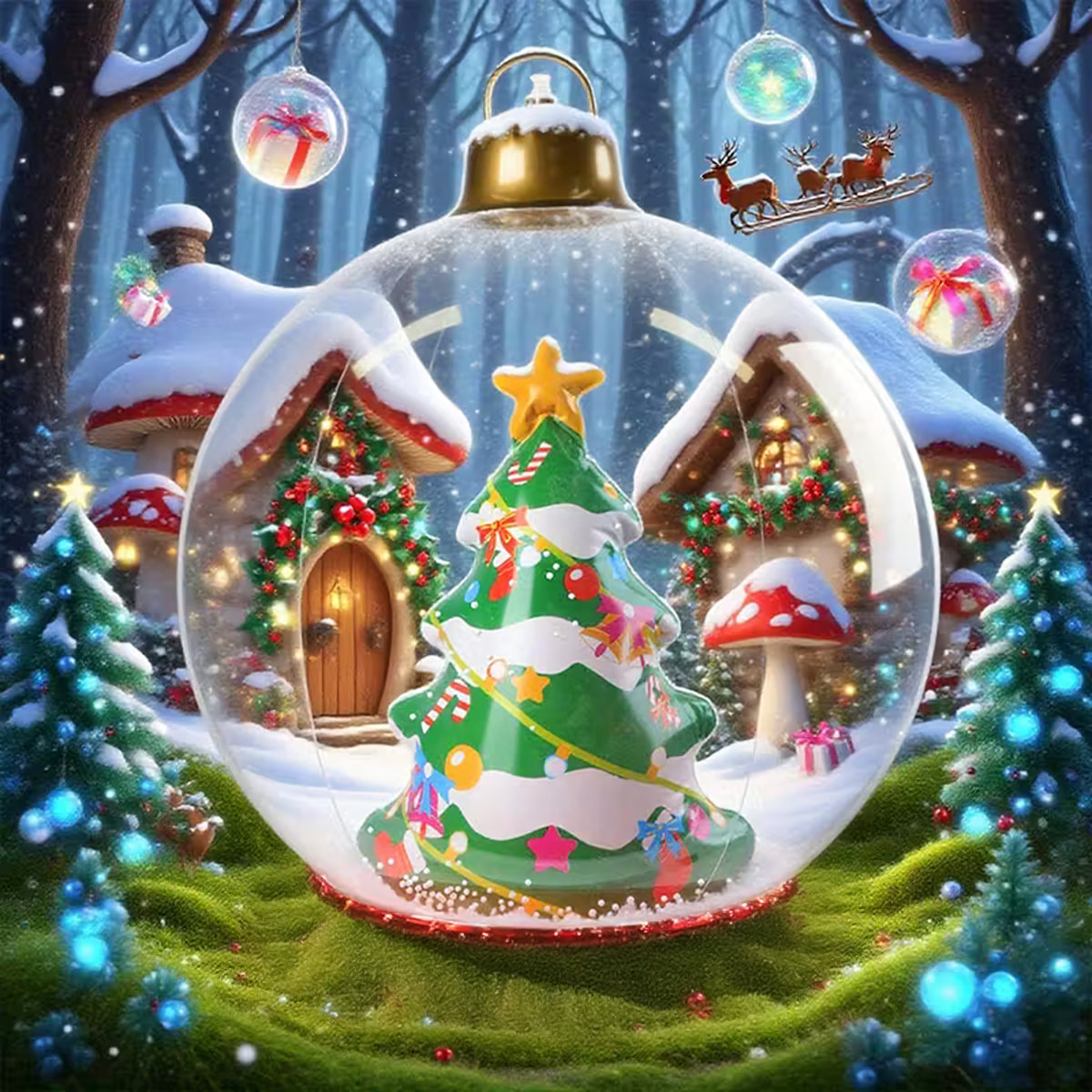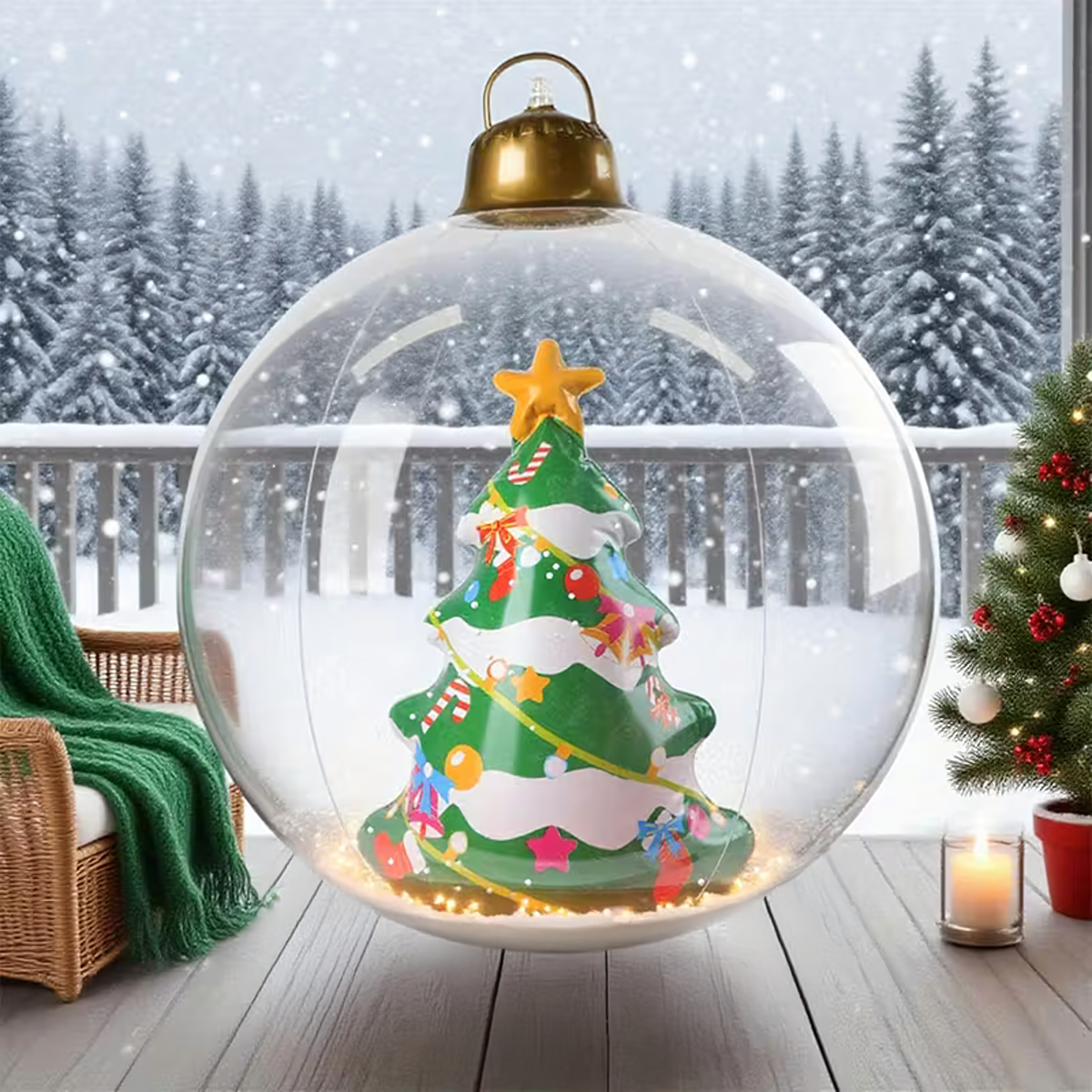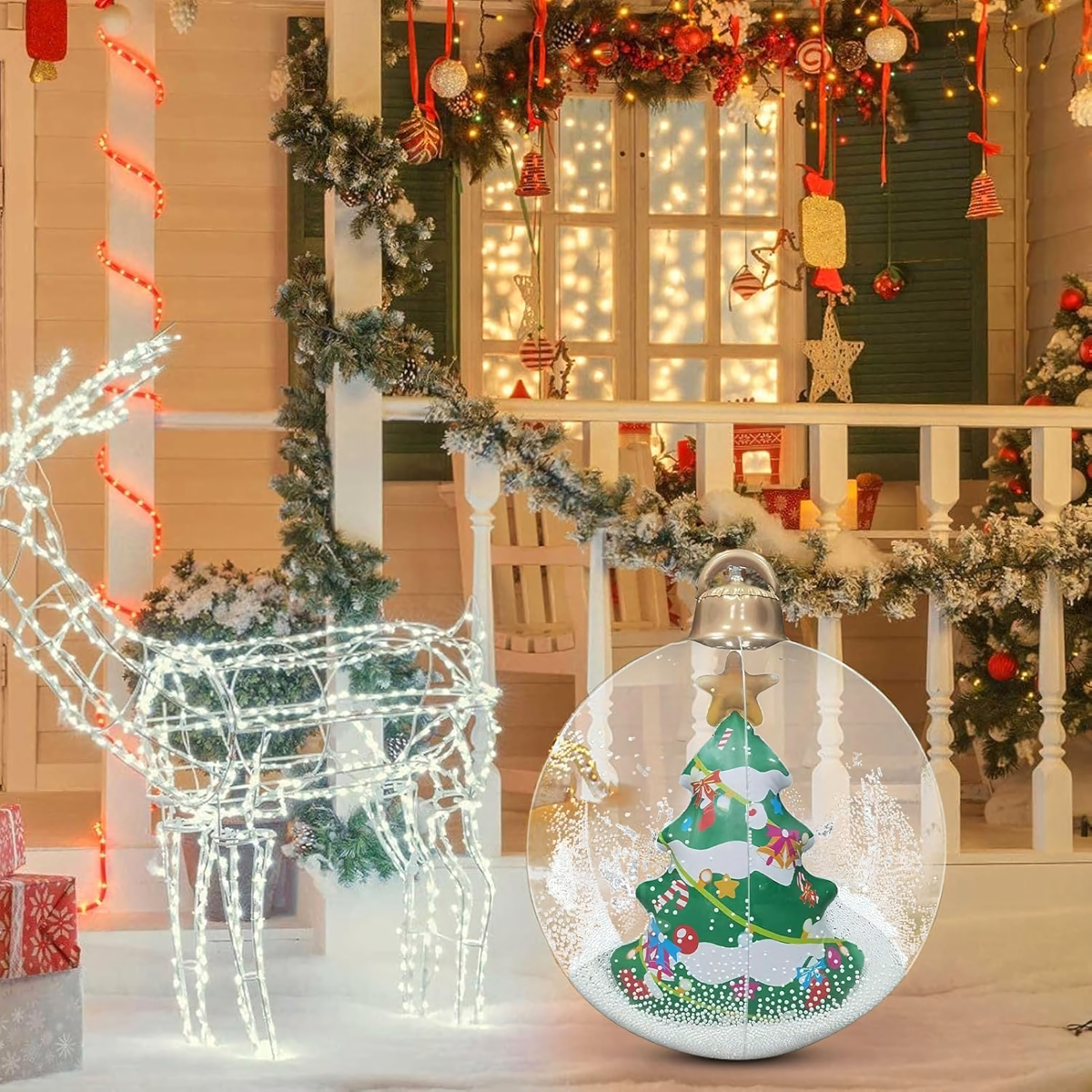 Uppūšamā Ziemassvētku bumba ir unikāla dekorācija, kas piešķirs jūsu mājai un dārzam maģisku Ziemassvētku atmosfēru. Izgatavota no izturīga PVC materiāla, noturīga pret laikapstākļu ietekmi un piemērota atkārtotai lietošanai – ideāla Ziemassvētku svinībām!
