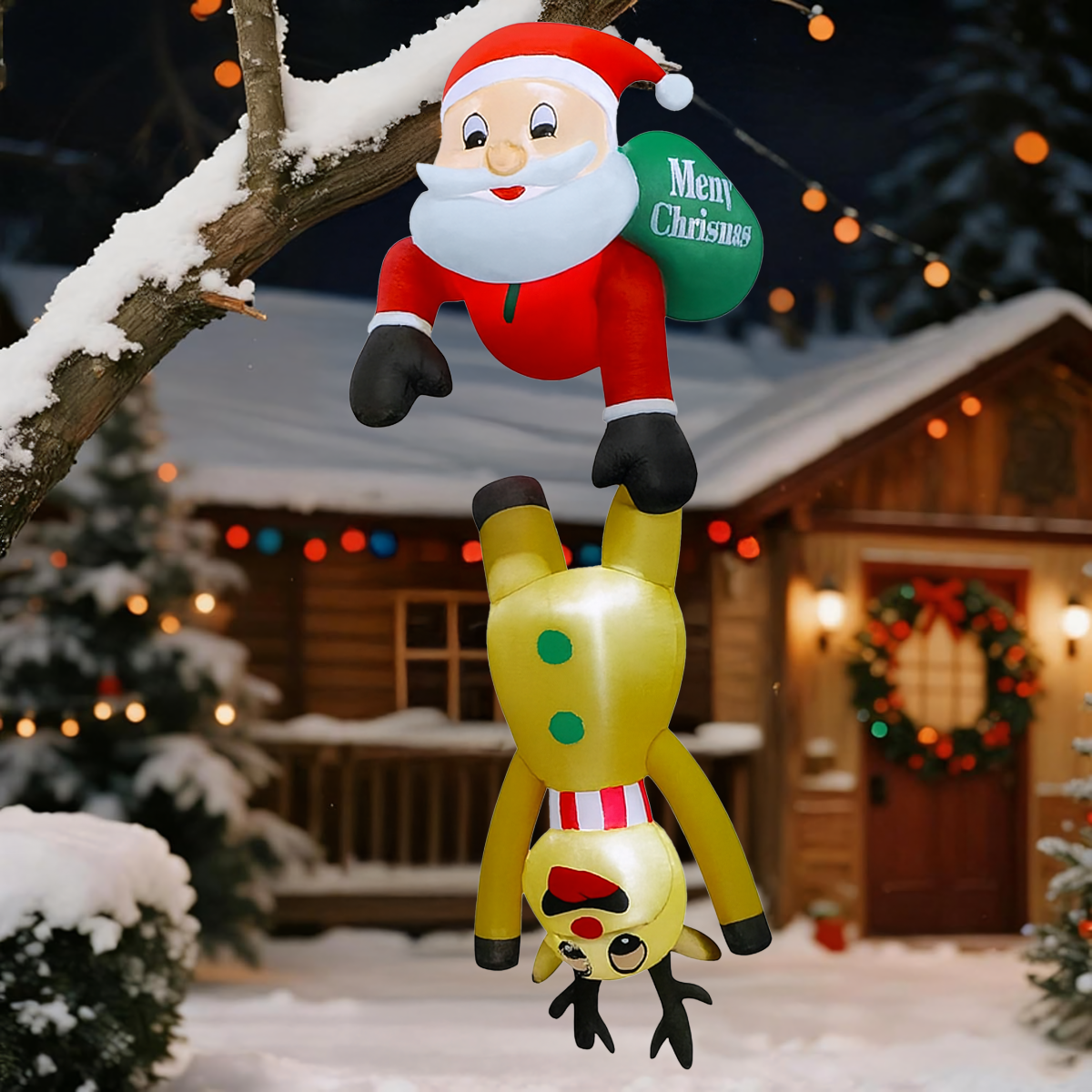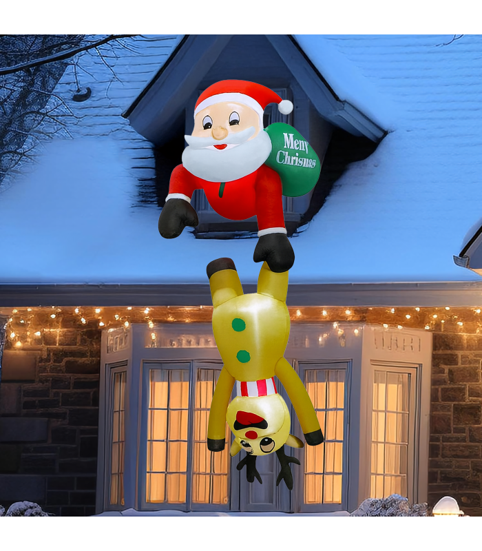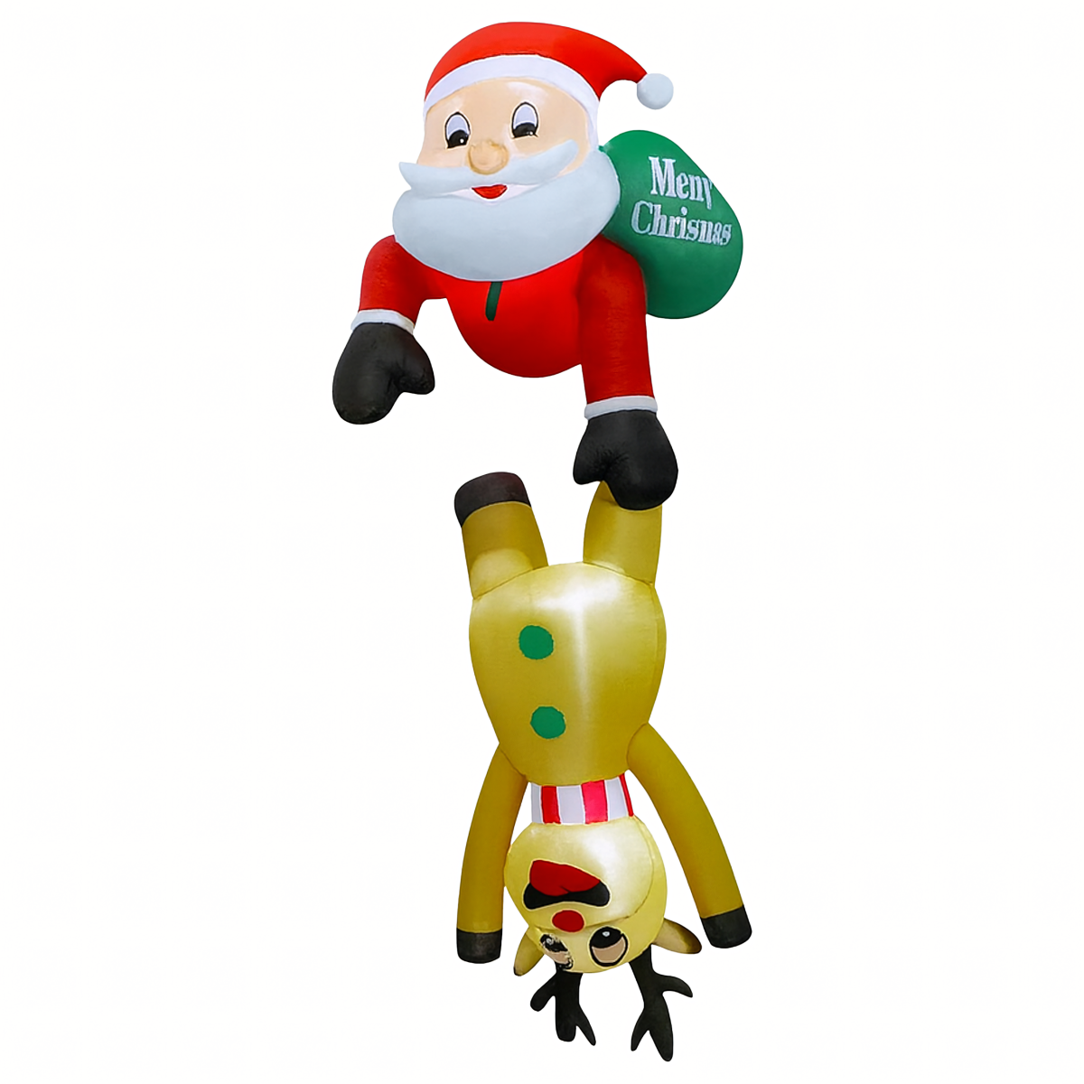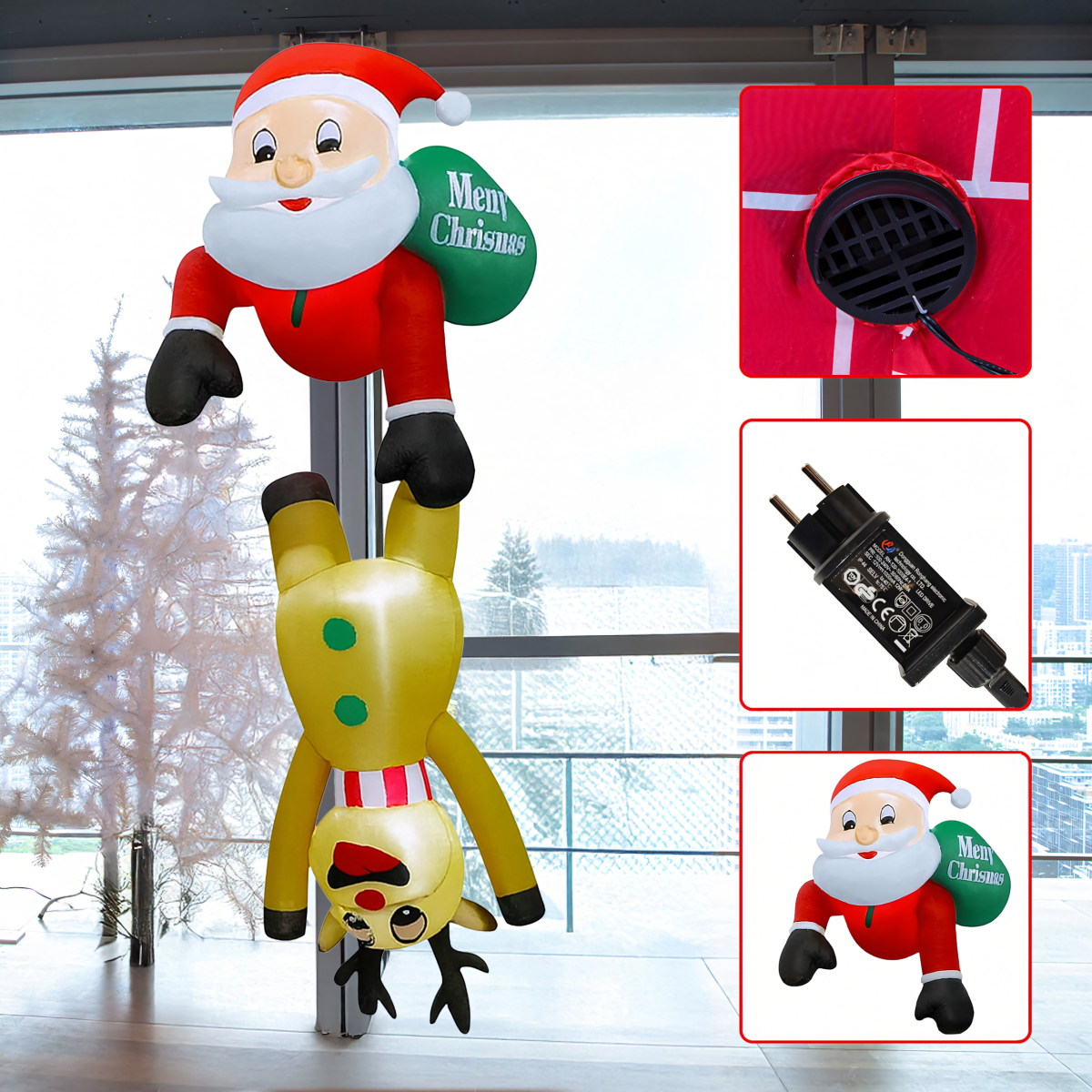 Piepūšamais Ziemassvētku vecītis ar Rūķi 2,1 m ir unikāla, jautra Ziemassvētku dekorācija, kas piešķir jūsu mājai un dārzam īpašu noskaņu. Pateicoties iebūvētajai LED apgaismojumam un radošajam dizainam, tā piesaista uzmanību un izraisa smaidu gan bērniem, gan pieaugušajiem. Izgatavots no izturīga poliestera auduma, kas ir noturīgs pret laikapstākļiem – ideāli piemērots gan iekštelpās, gan ārā.