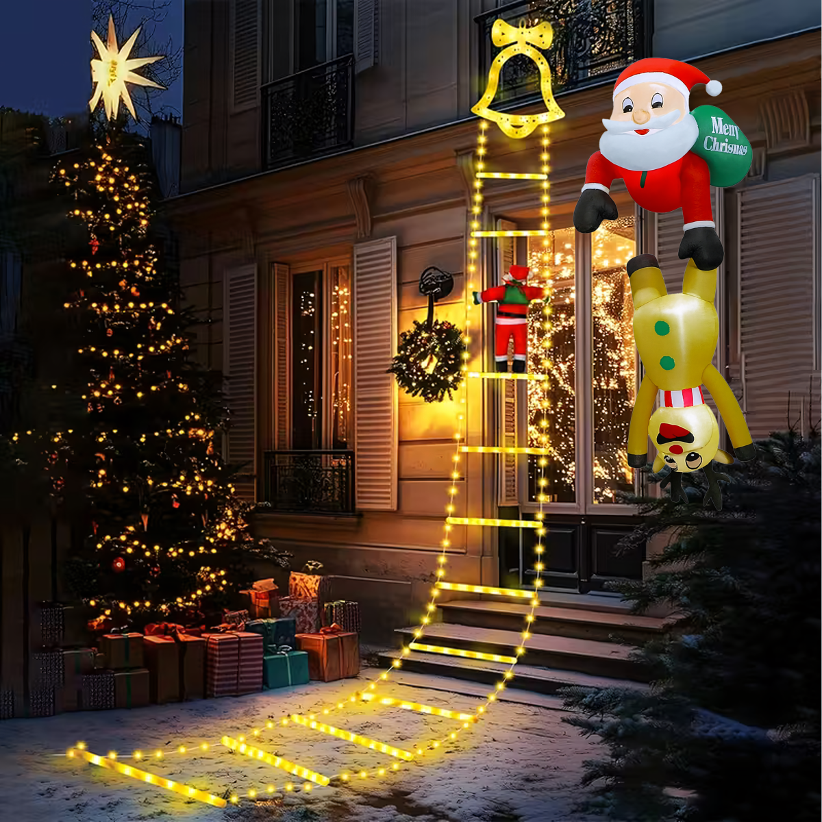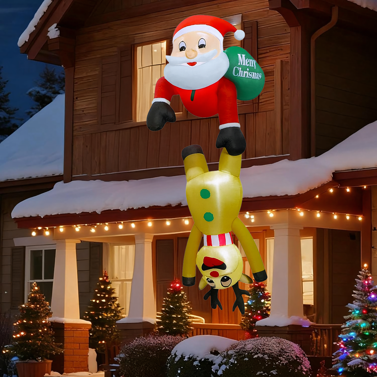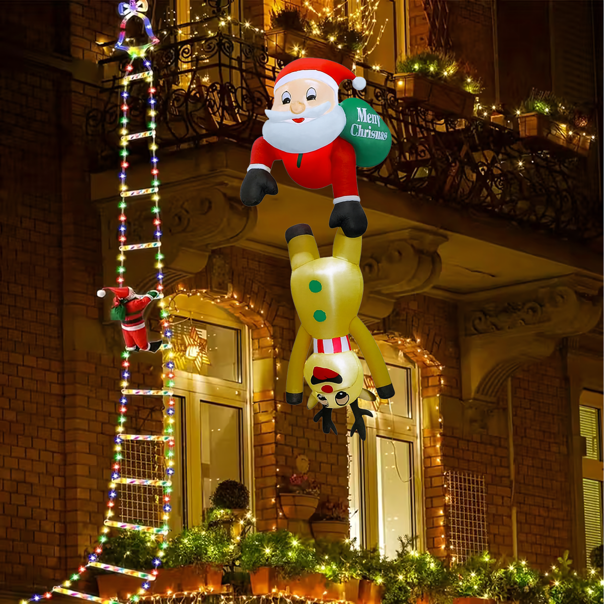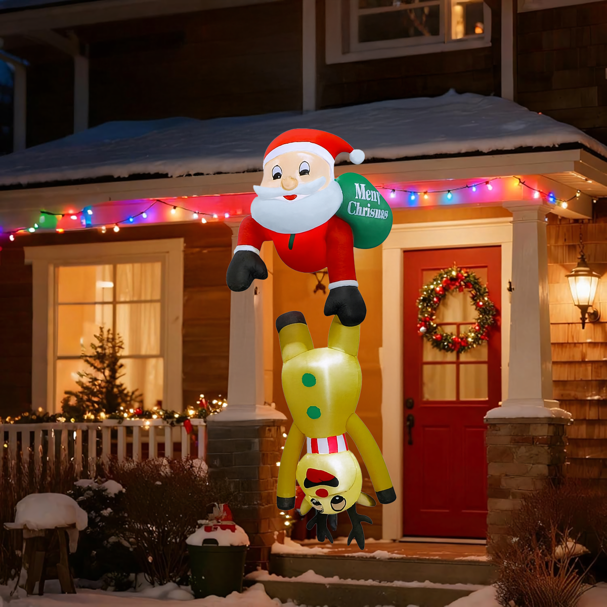 Piepūšamais Ziemassvētku vecītis ar Rūķi 2,1 m ir unikāla, jautra Ziemassvētku dekorācija, kas piešķir jūsu mājai un dārzam īpašu noskaņu. Pateicoties iebūvētajai LED apgaismojumam un radošajam dizainam, tā piesaista uzmanību un izraisa smaidu gan bērniem, gan pieaugušajiem. Izgatavots no izturīga poliestera auduma, kas ir noturīgs pret laikapstākļiem – ideāli piemērots gan iekštelpās, gan ārā.