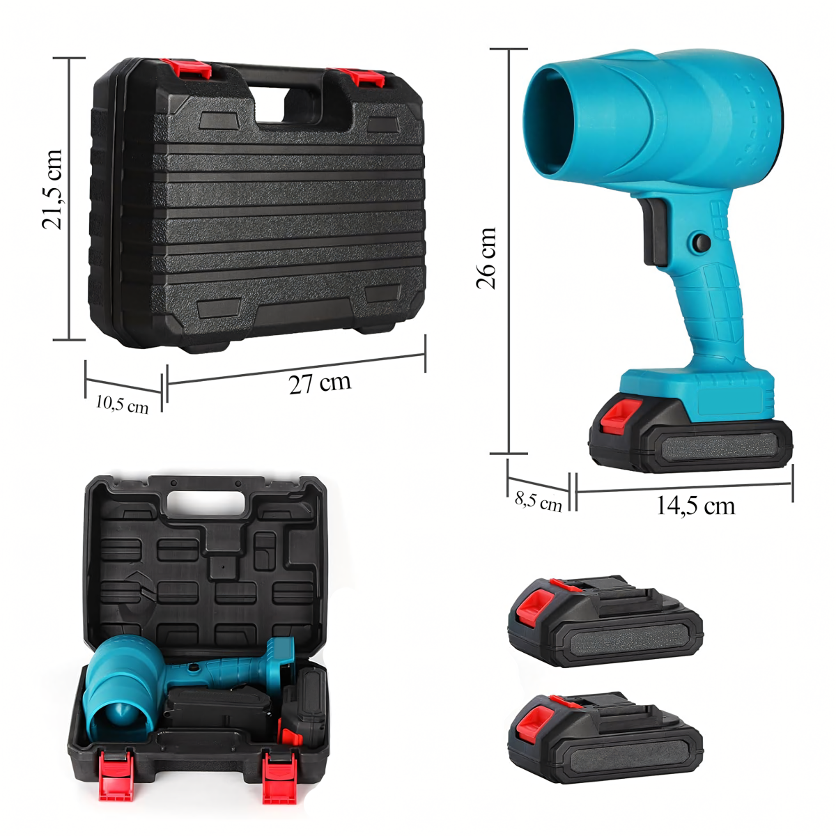 Bezvadu akumulatora pūšamā ierīce 400W ar 2 akumulatoriem 21V (2×1300 mAh) ir viegla, ergonomiska un universāla ierīce tīrīšanai un žāvēšanai. Pateicoties turbopūtes tehnoloģijai, rada spēcīgu gaisa plūsmu, kas ātri noņem lapas, putekļus, smalkas daļiņas vai svaigu sniegu. Ideāla mājai, dārzam, garāžai, darbnīcai un ceļojumiem.