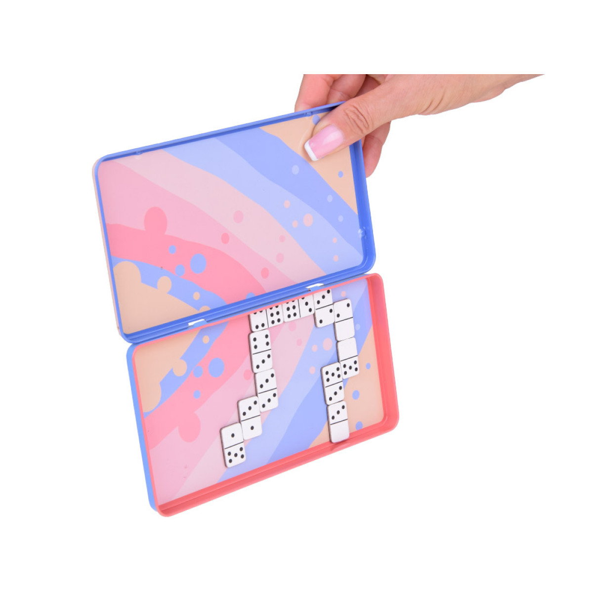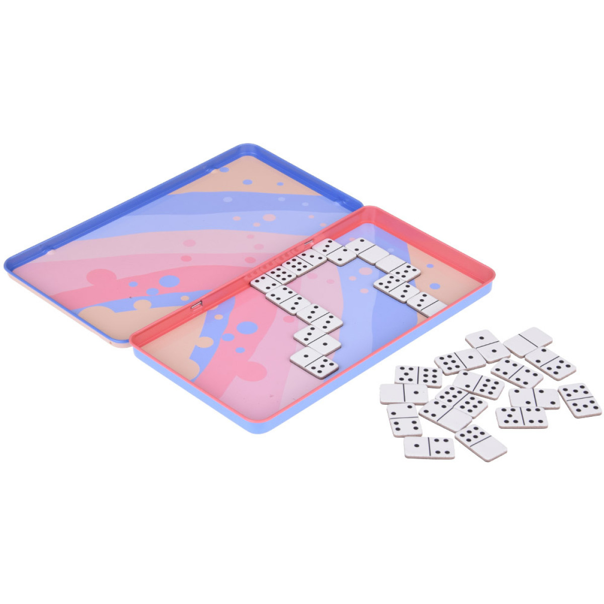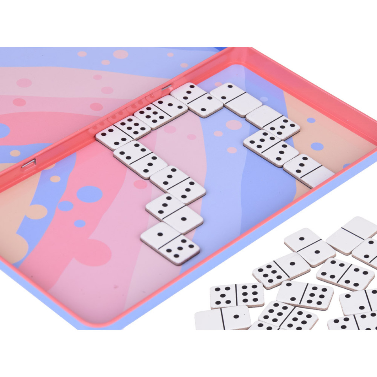 Magnētiskā domino spēle ir ideāla ceļojumiem, iepakota mazā, metāla, ērtā kastītē, kas arī kalpo kā spēles laukums. Tā ir izglītojoša spēle, kas nodrošinās izklaidi visai ģimenei, lai ceļojums paietu nemanot. Jūs varat atrast šādas un citas izglītojošas, loģiskas spēles mūsu veikalā Jokomisiada.