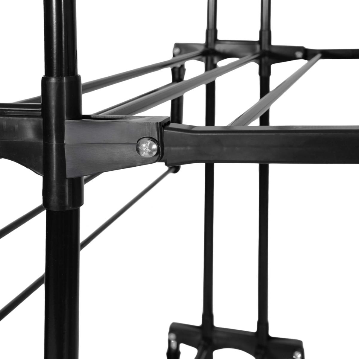 - 8 stieņi uz platformām, kas nodrošina pietiekami daudz vietas ikdienas veļai.