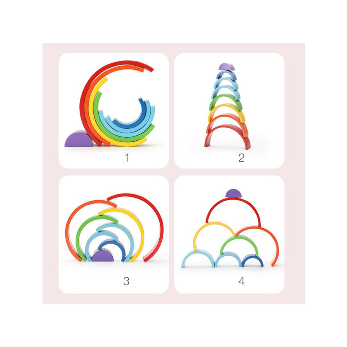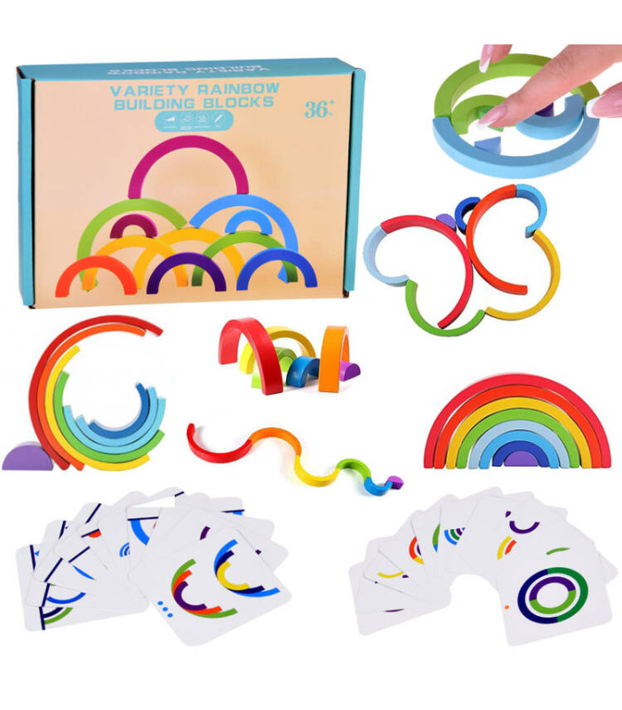 Koka Montessori izglītojošā puzle krāsaina varavīksne + uzdevumi ZA5328