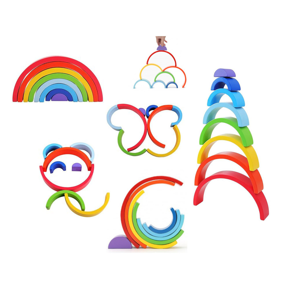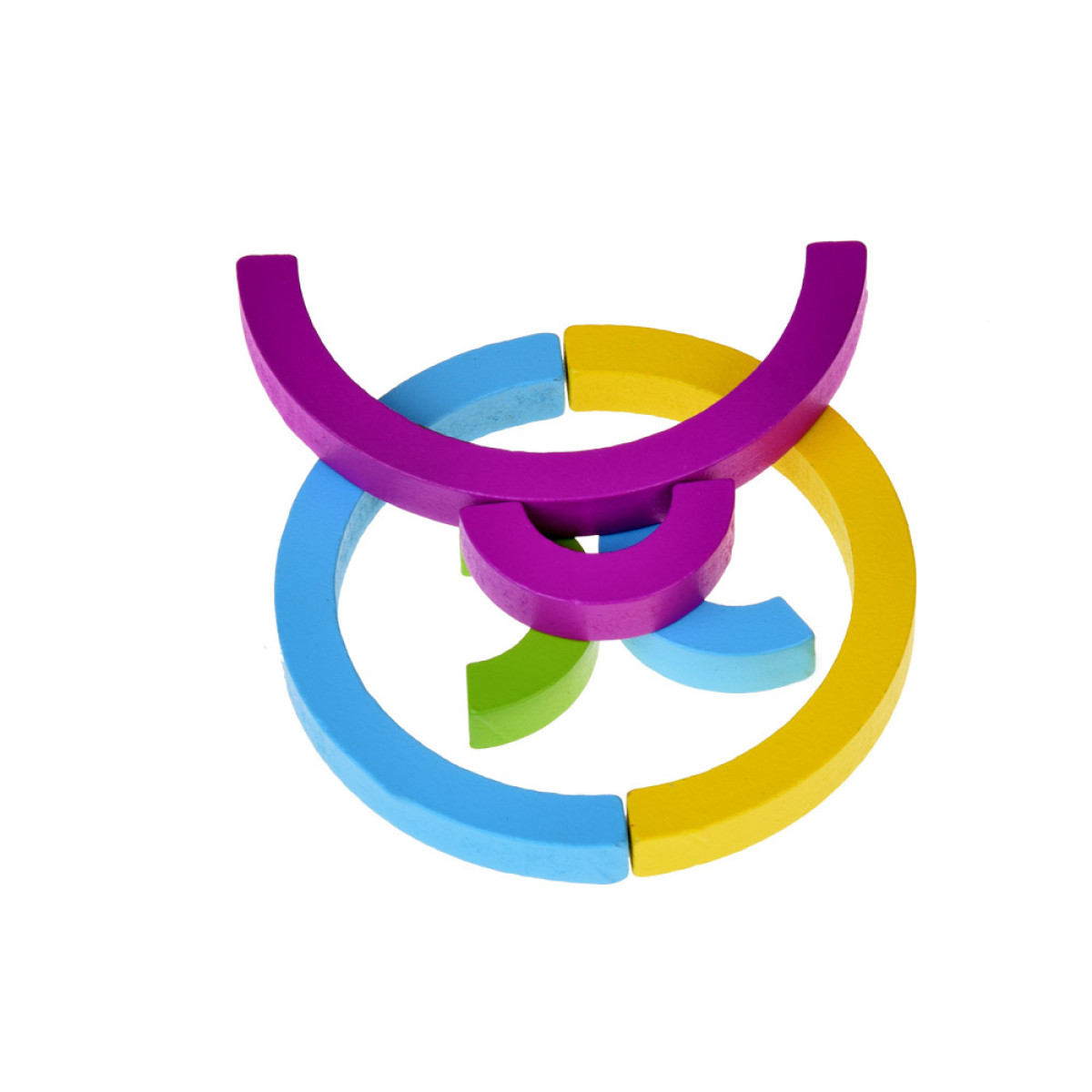 Koka klucīši ir krāsoti ar drošu krāsu, kas padara tos pievilcīgus bērnam un mudina spēlēties.