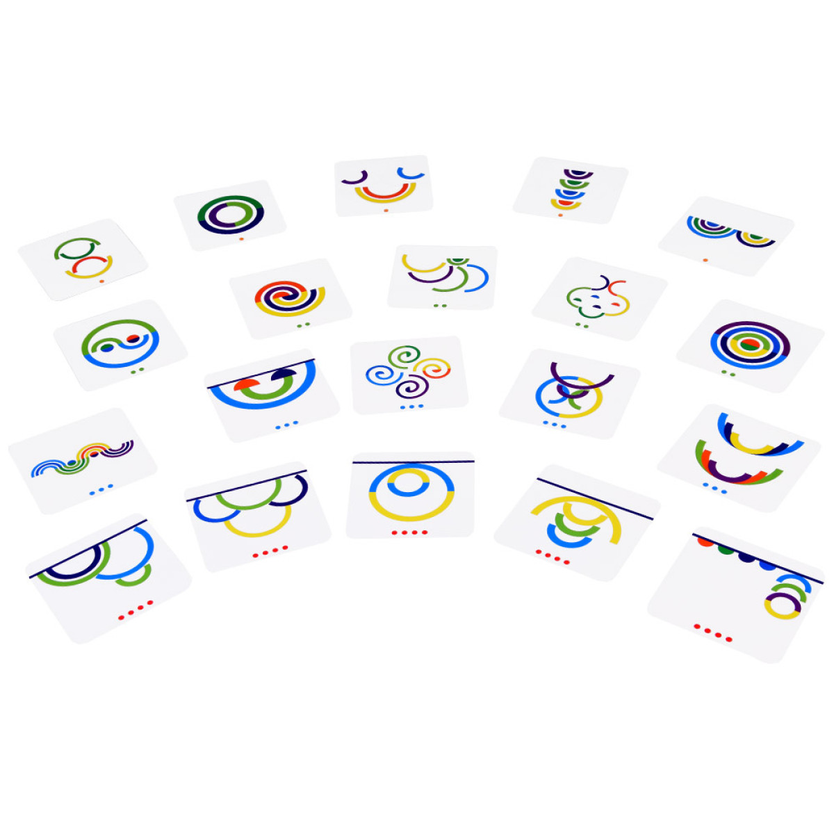 Divpusējās kartiņās ir uzdevumi ar dažādu grūtības pakāpi. Tie ir marķēti ar punktiem (no 1 līdz 4), lai varētu viegli pielāgot bērna vecumam un prasmēm, ar laiku paaugstinot sarežģītību.