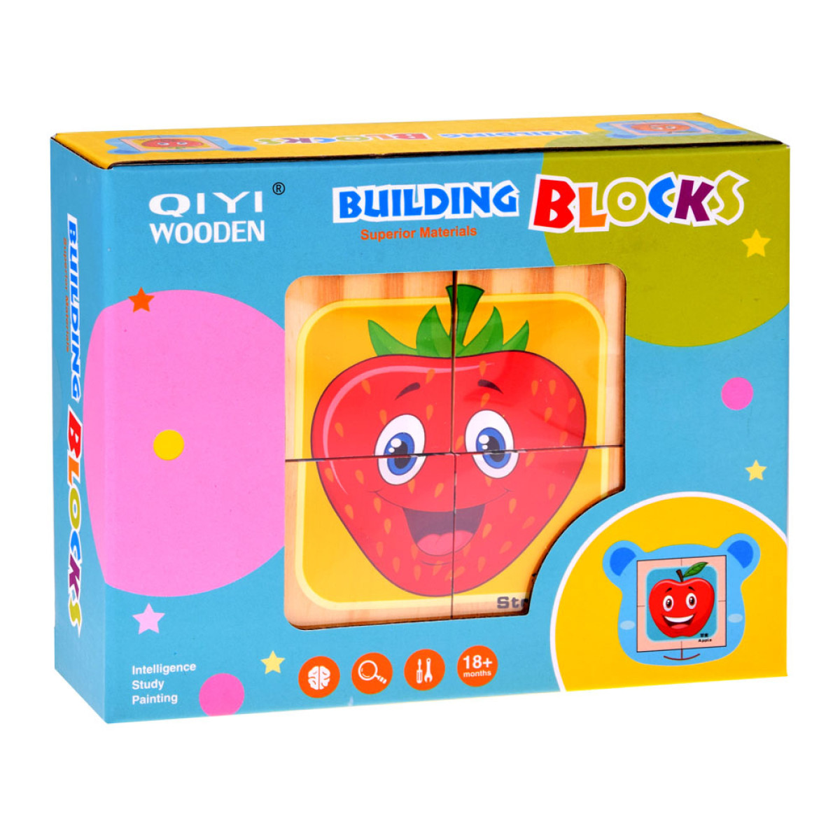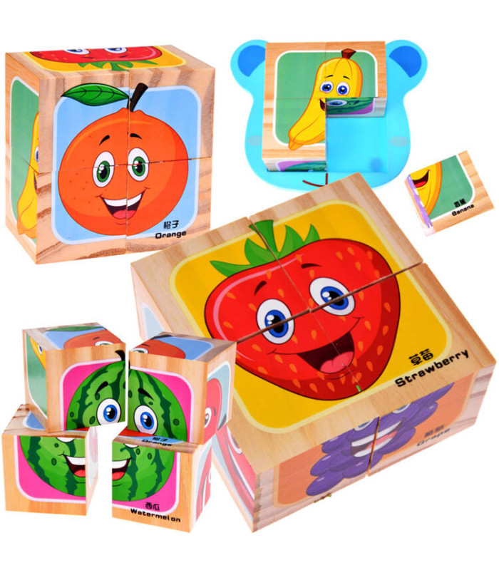 Koka klucīši ar augļu attēliem ir lieliska izvēle mazajiem, kuri aizraujas ar izglītojošām rotaļlietām. Koka klucīši ar attēliem ļauj veidot bildes ar garšīgu augļu attēliem. Klucīši ir ļoti estētiski un precīzi izgatavoti, nodrošinot izglītojošu spēli katram mazulim. Bērna uzdevums ir salikt attēlu ar augli, saskaņojot pareizo formu uz attēla. Protams, mazulis var izvēlēties izveidot savu augļu variantu, piemēram, zemeņu-apelsīnu vai arbūzu-ābolu. Ideju bērnam noteikti netrūks.