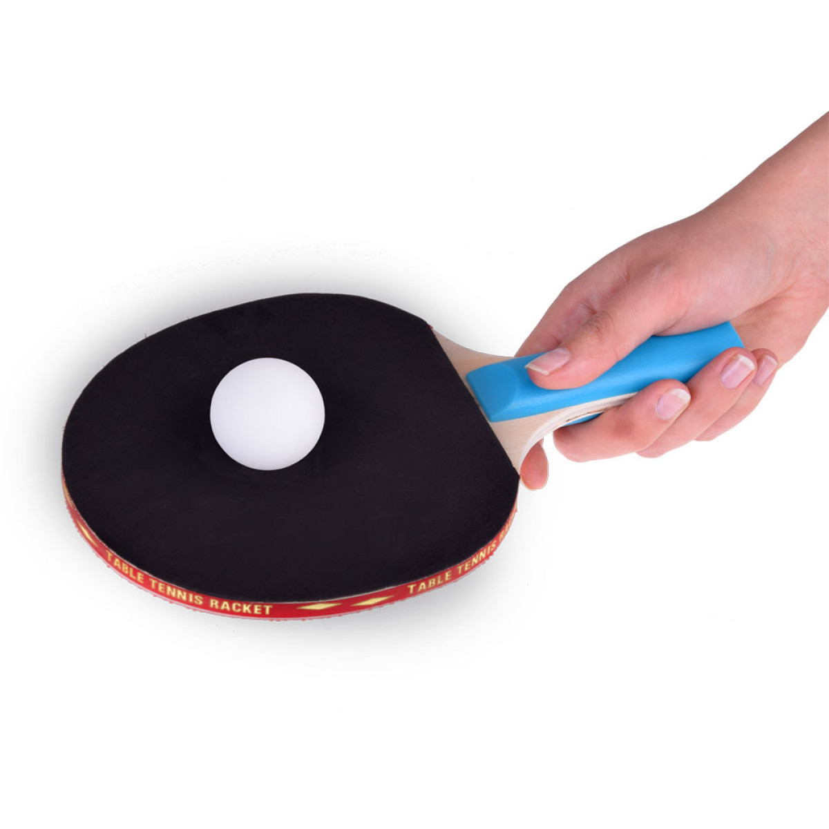 Iepakojumā atradīsiet trīs vieglas, plastmasas bumbiņas un divas koka raketes. To lielā priekšrocība ir ergonomiska forma, kas ļauj brīvi atsist bumbiņas un novērš izslīdēšanu no rokas.