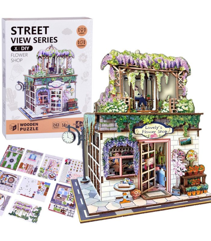 Atklājiet neparasto radošās spēles pasauli ar mūsu koka 3D puzzļu komplektu "Ziedu Veikals" - unikālu modeli, ko varat salikt pats, kas aizvedīs jūs uz pasakainu pasauli, pilnu ar ziedu dekorācijām, krāsām un detaļām. Šis būvniecības komplekts, kas sastāv no 243 precīzi izgatavotiem elementiem, ļauj izveidot apbrīnojamu ziedu veikala ēku, kas ir pilna ar krāsainiem ziediem un smalkām dekorācijām.