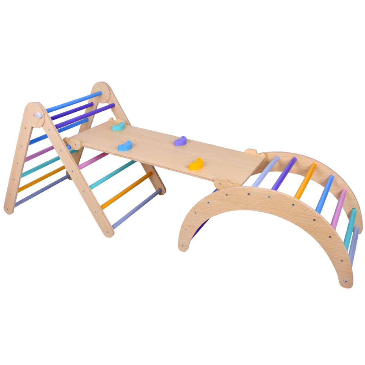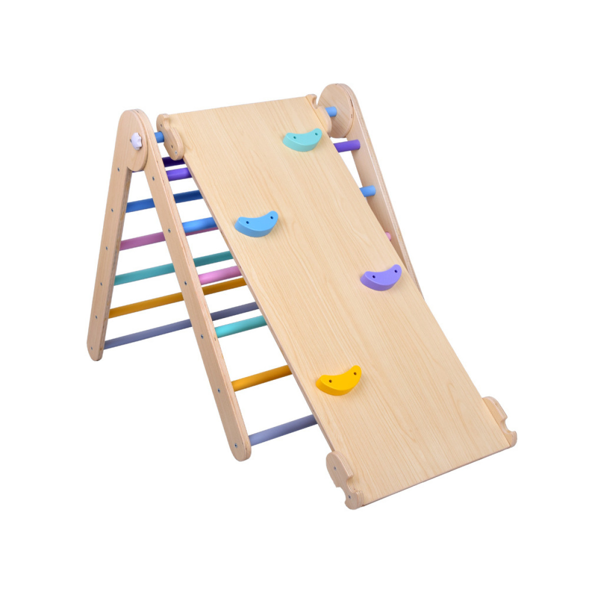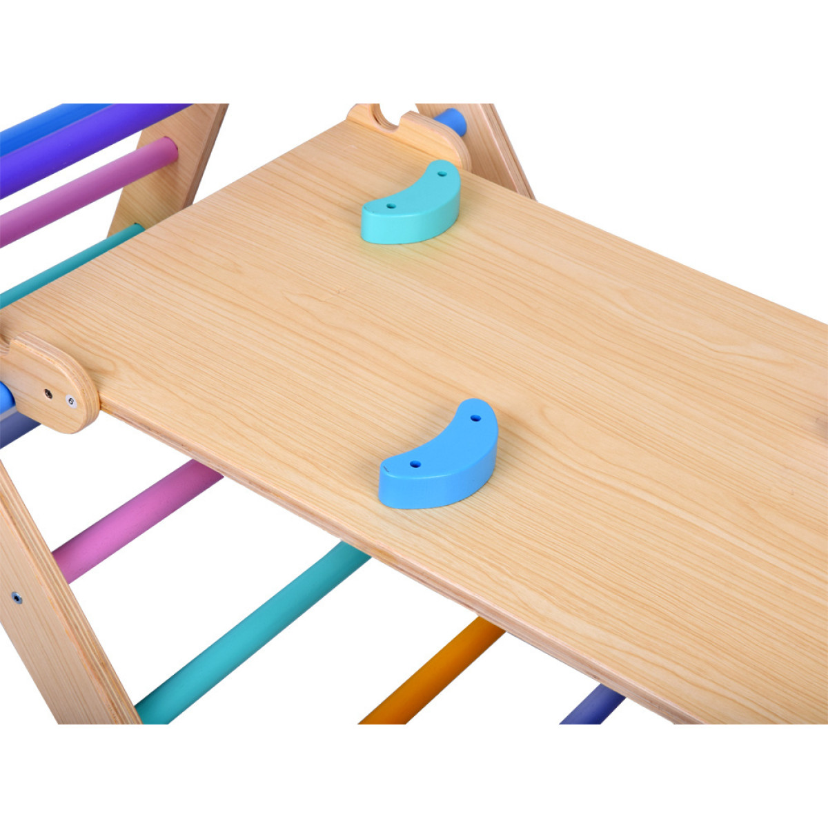 Prieks, kustība, izaugsme! Šis Montessori kāpšanas komplekts sastāv no kāpšanas trijstūra, kāpšanas loka un rampas. Katru elementu var izmantot atsevišķi vai kombinācijā, piedāvājot bērniem neierobežotas radošās spēles iespējas.