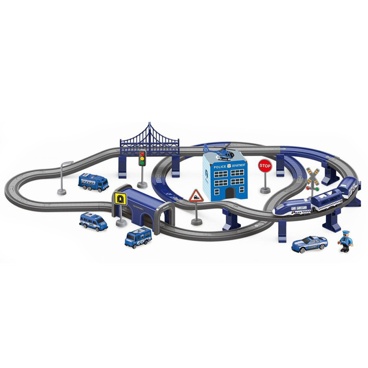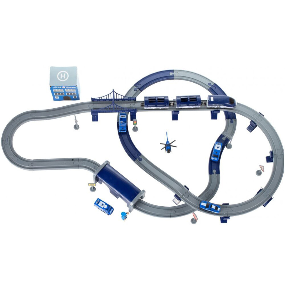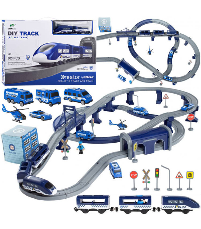 Komplekts ar policijas komisariātu, vilcienu, automašīnām un pat helikopteru nodrošina daudz radošas izklaides katram mazam likuma sargam. Bagātīgi aprīkots komplekts, kas sastāv no 92 elementiem, ļauj uzbūvēt vilciena trasi ar tiltiem, viaduktiem un tuneļiem. Ap trasi var izvietot ceļazīmes, policijas staciju ar helikoptera nolaišanās vietu.