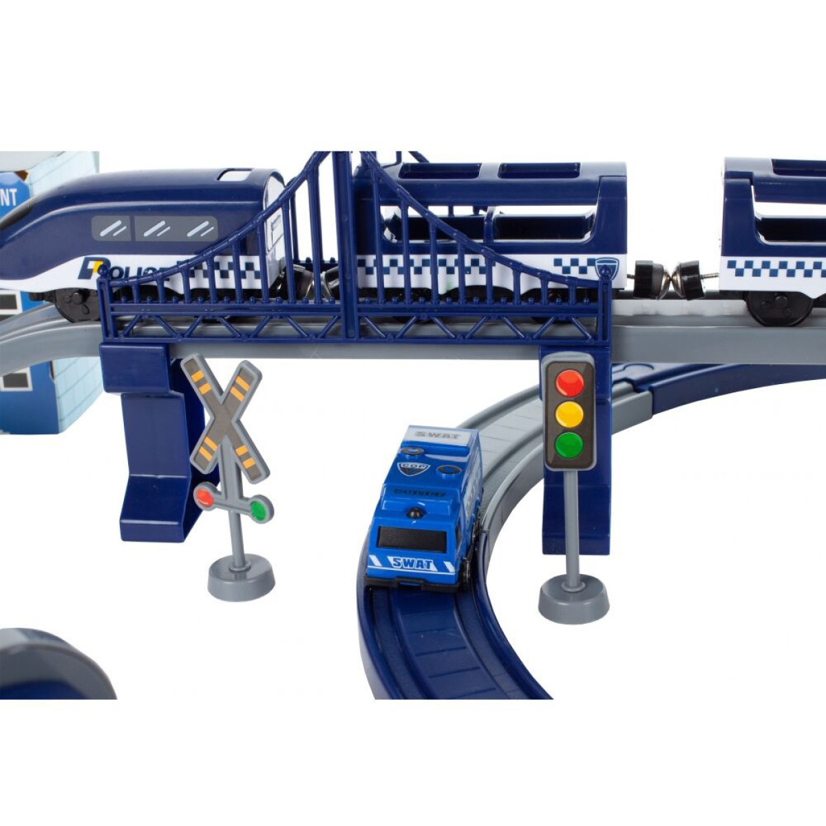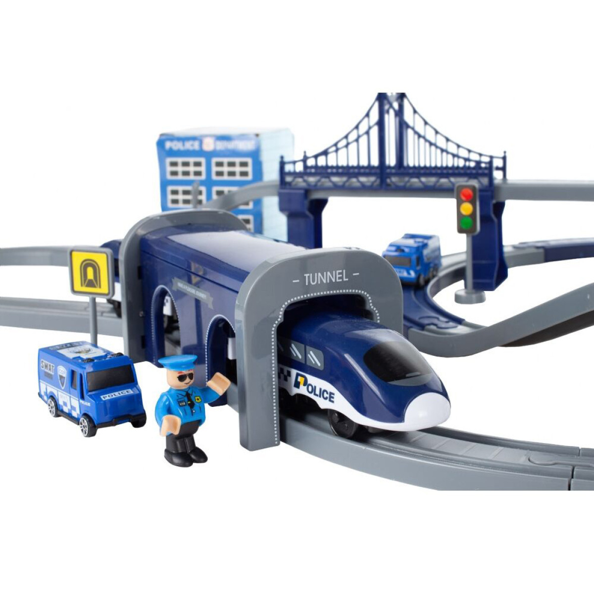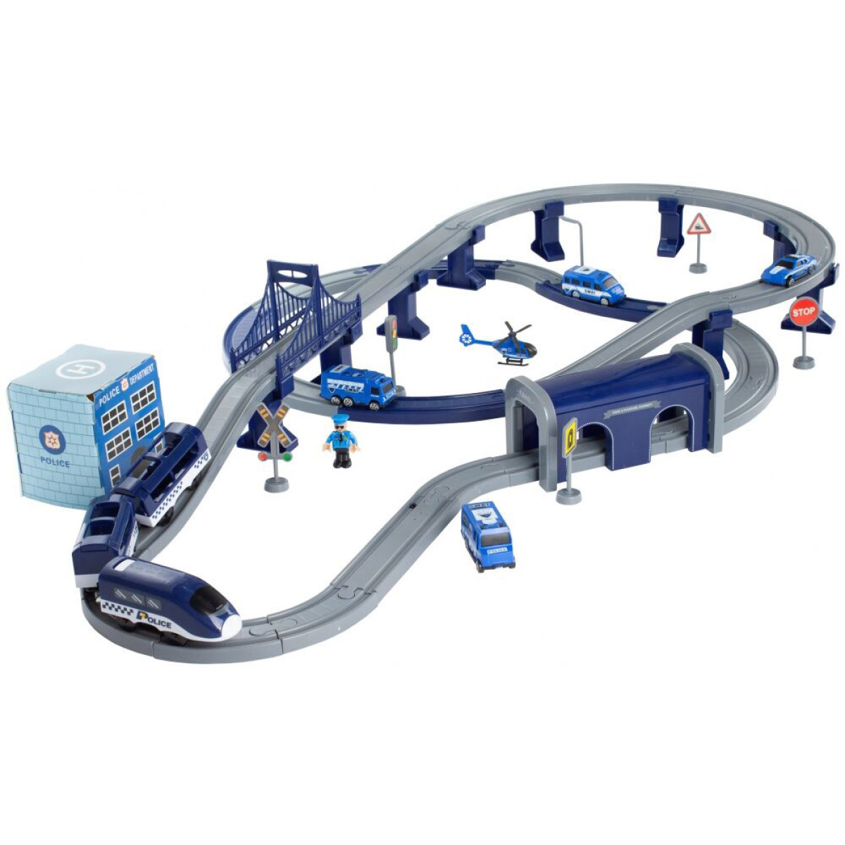 Komplekts ar policijas komisariātu, vilcienu, automašīnām un pat helikopteru nodrošina daudz radošas izklaides katram mazam likuma sargam. Bagātīgi aprīkots komplekts, kas sastāv no 92 elementiem, ļauj uzbūvēt vilciena trasi ar tiltiem, viaduktiem un tuneļiem. Ap trasi var izvietot ceļazīmes, policijas staciju ar helikoptera nolaišanās vietu.