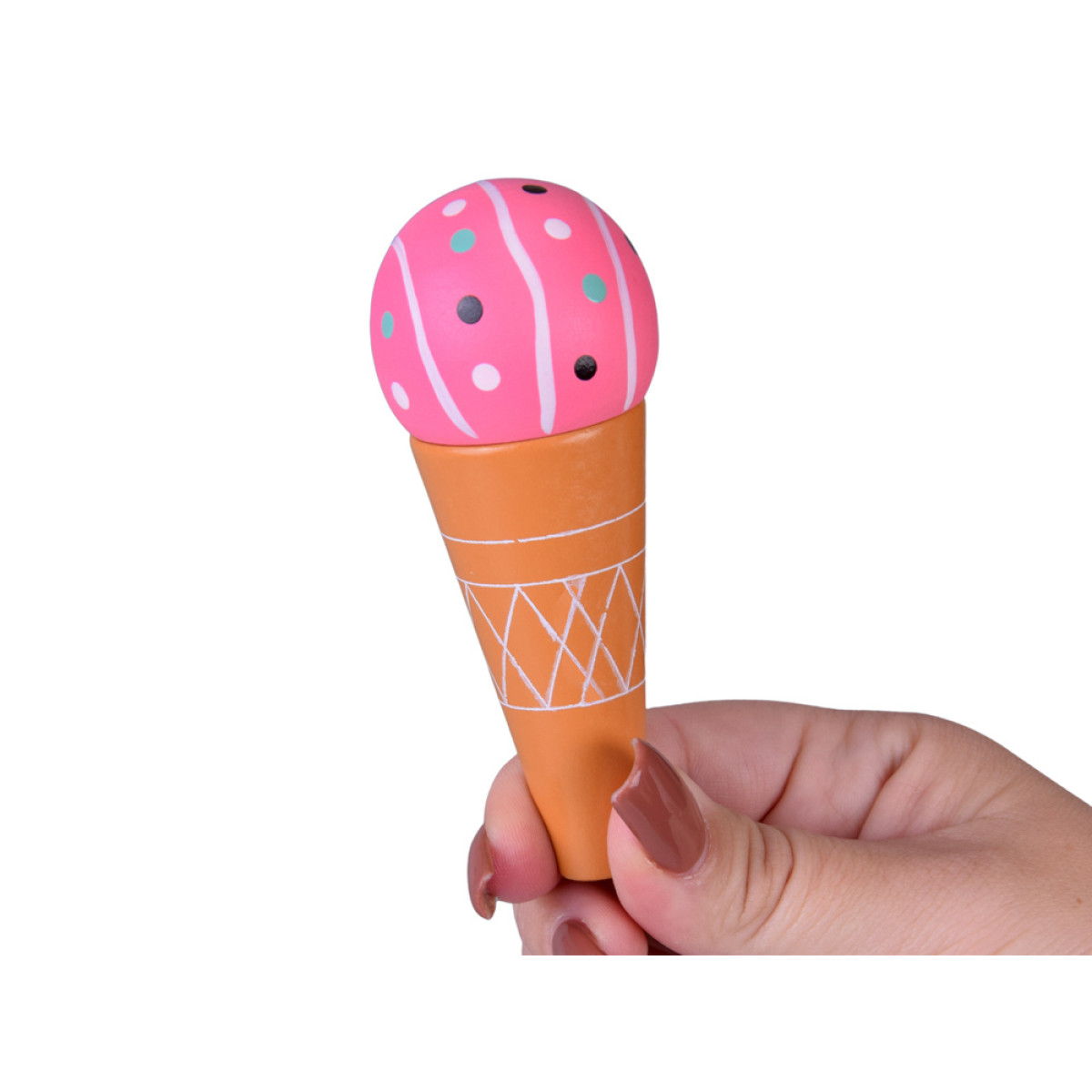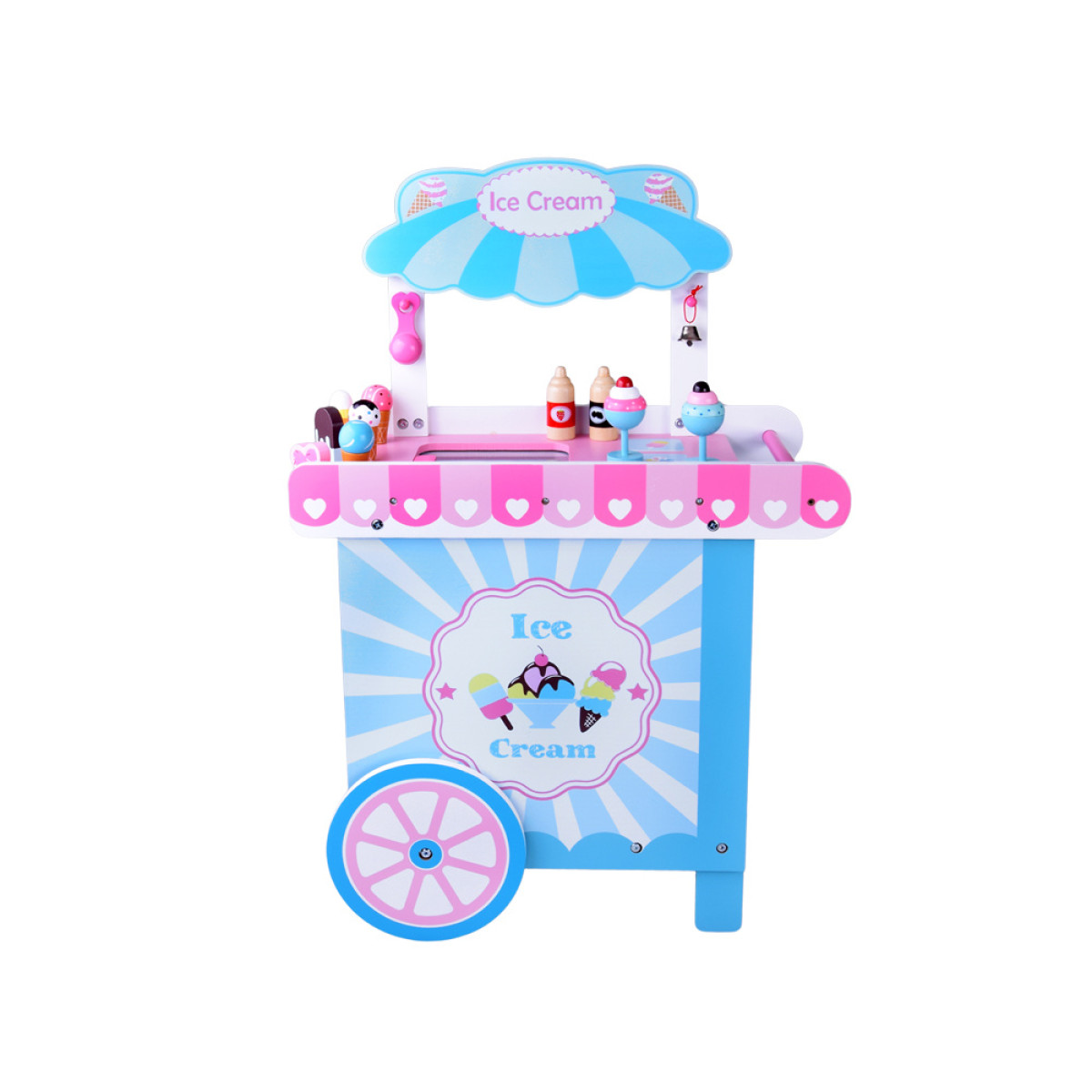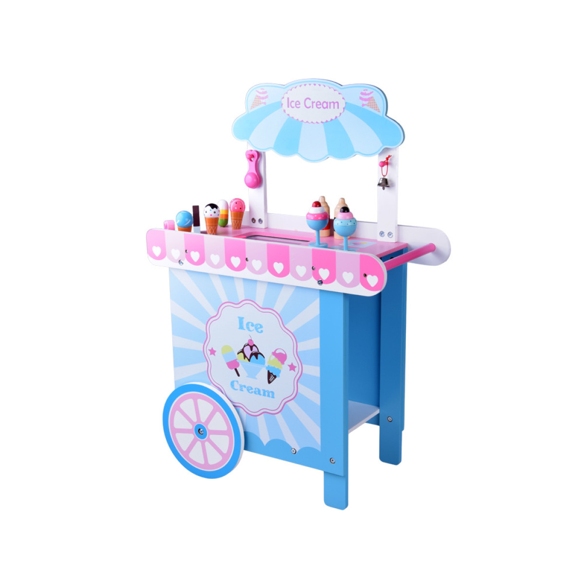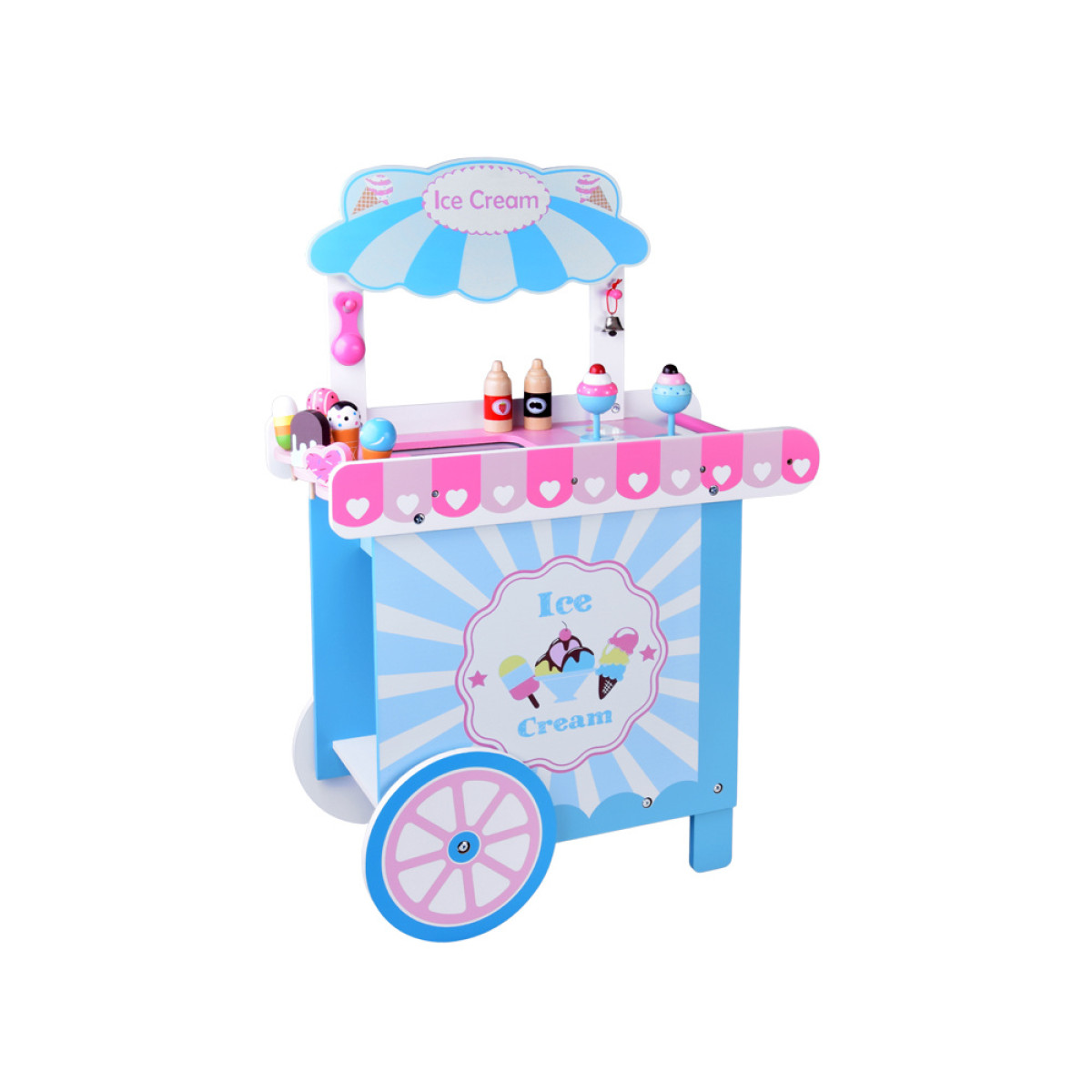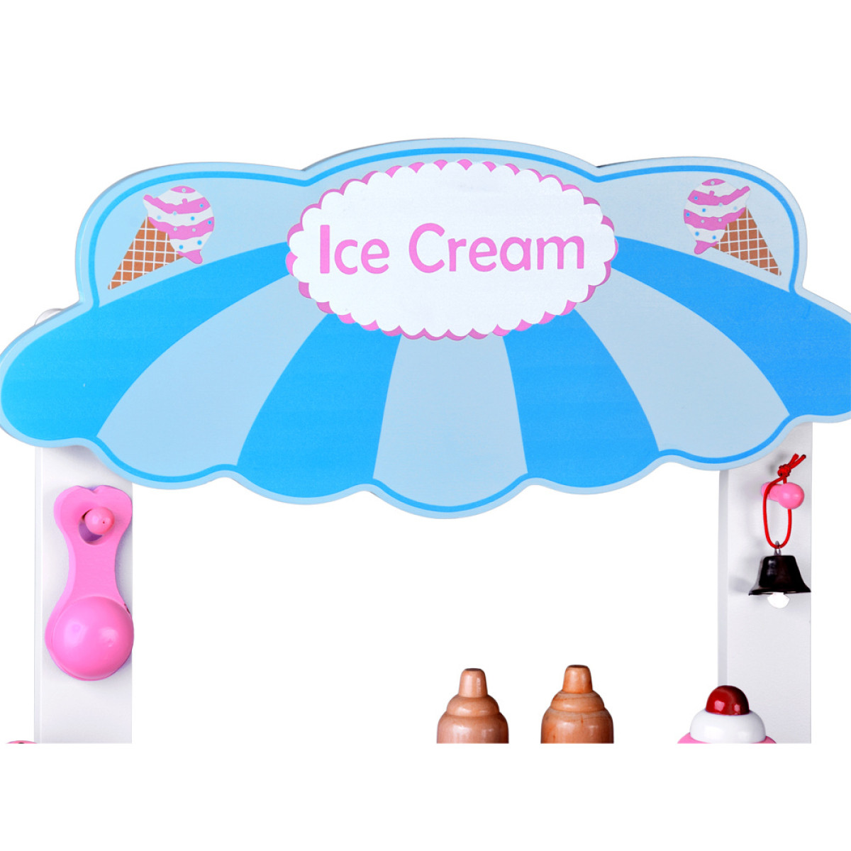 Šis burvīgais, pilnībā no koka veidotais saldējuma kiosks ir īsts prieks maziem veikalu un konditorejas spēļu cienītājiem. Ar lielu rūpību izstrādāts, tas piesaista uzmanību ar skaistu pasteļkrāsu gammu rozā un zilā toņos, kas lieliski iederas jebkurā bērnu istabā.