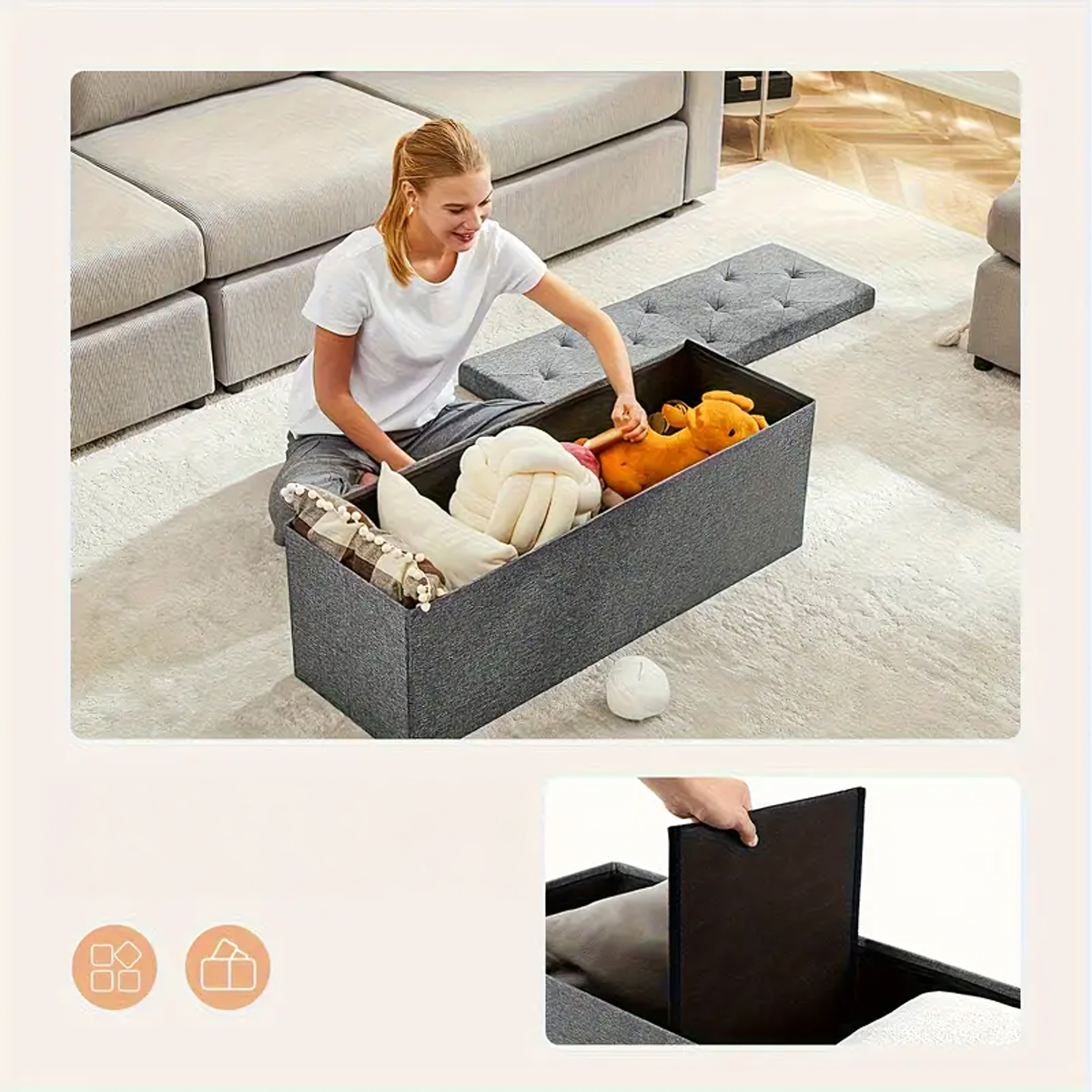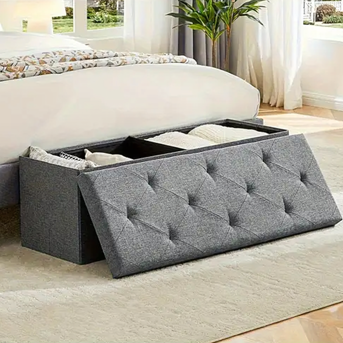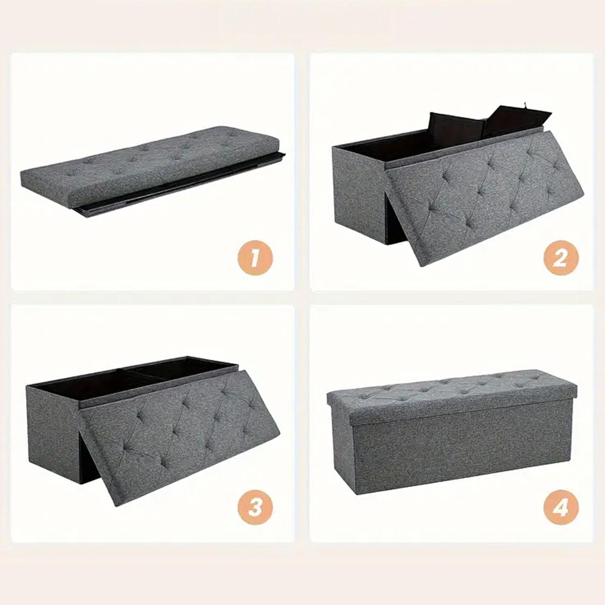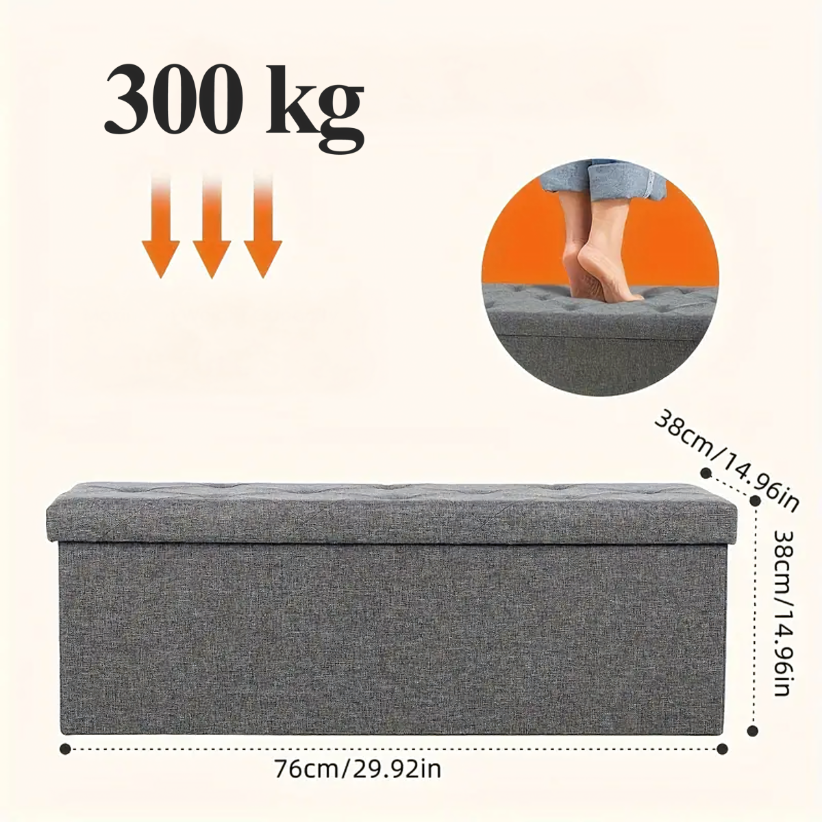 Funkcionāla un stilīga pufa 3 vienā ar plašu uzglabāšanas nodalījumu (80L), ideāli piemērota rotaļlietu, apģērbu vai gultasveļas glabāšanai. Stabilā MDF konstrukcija, apdarināta ar elegantu tumši pelēku audumu. Lieliski piemērota kā sēdekļa sols, kāju balsts vai mūsdienīgs dekoratīvs akcents jebkurā interjerā.