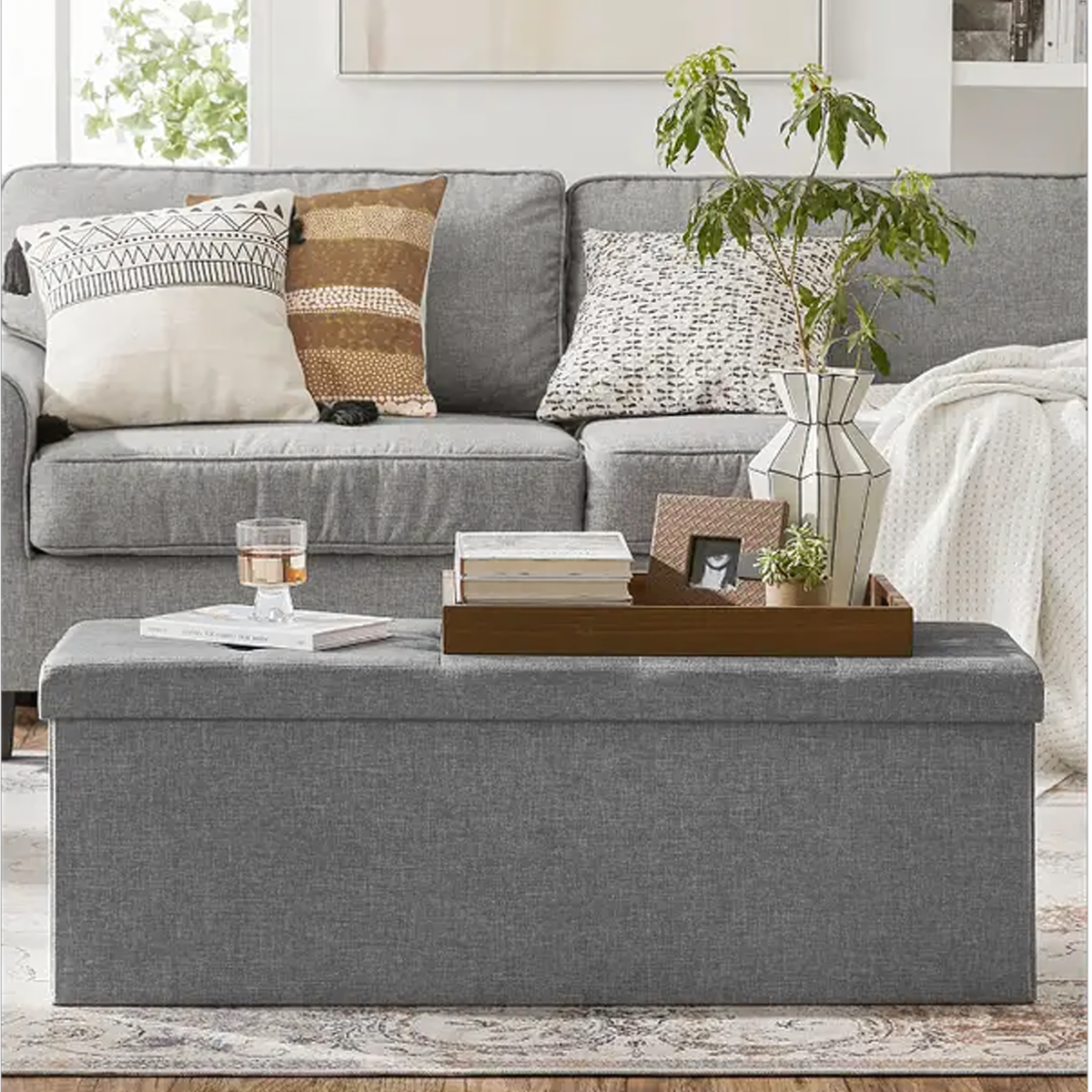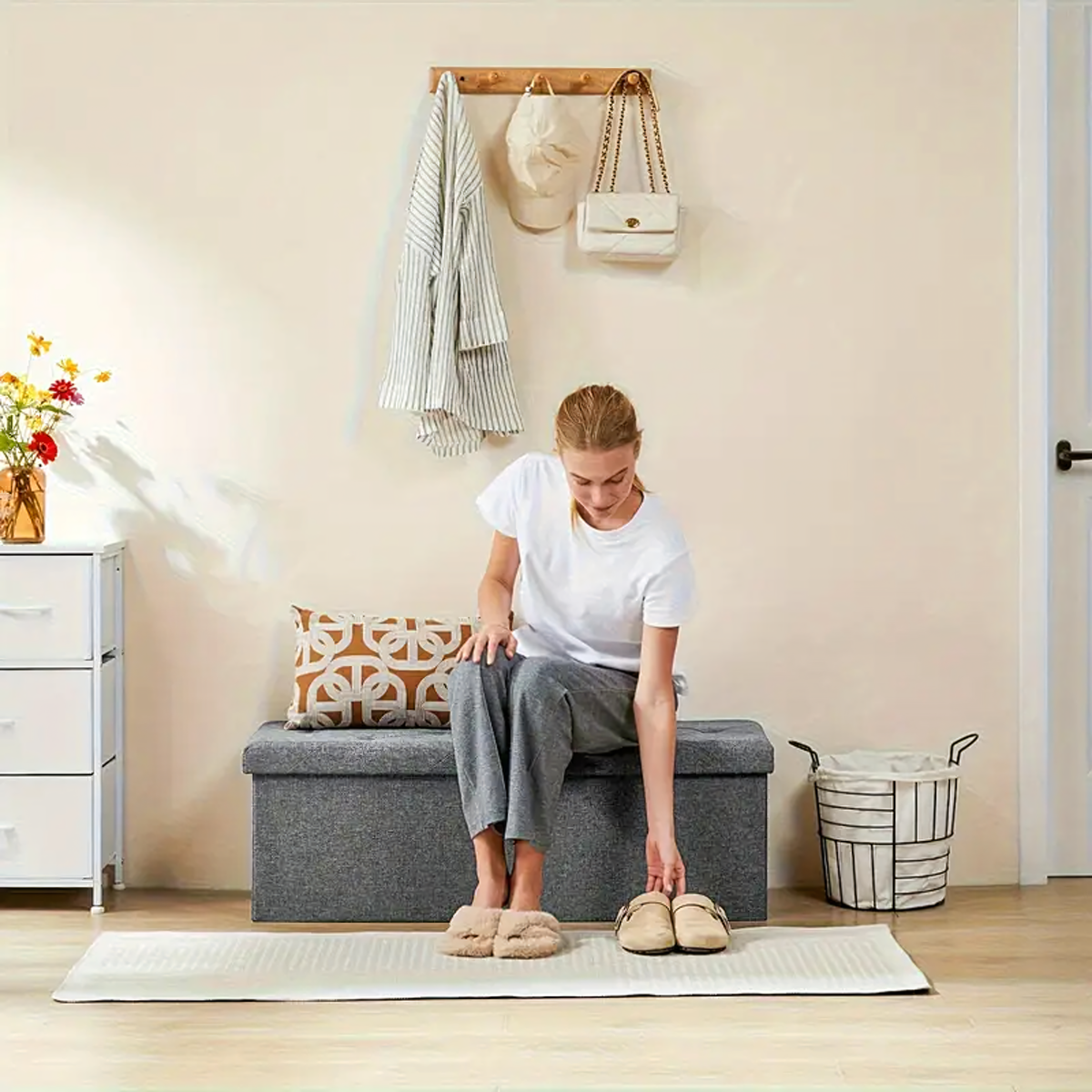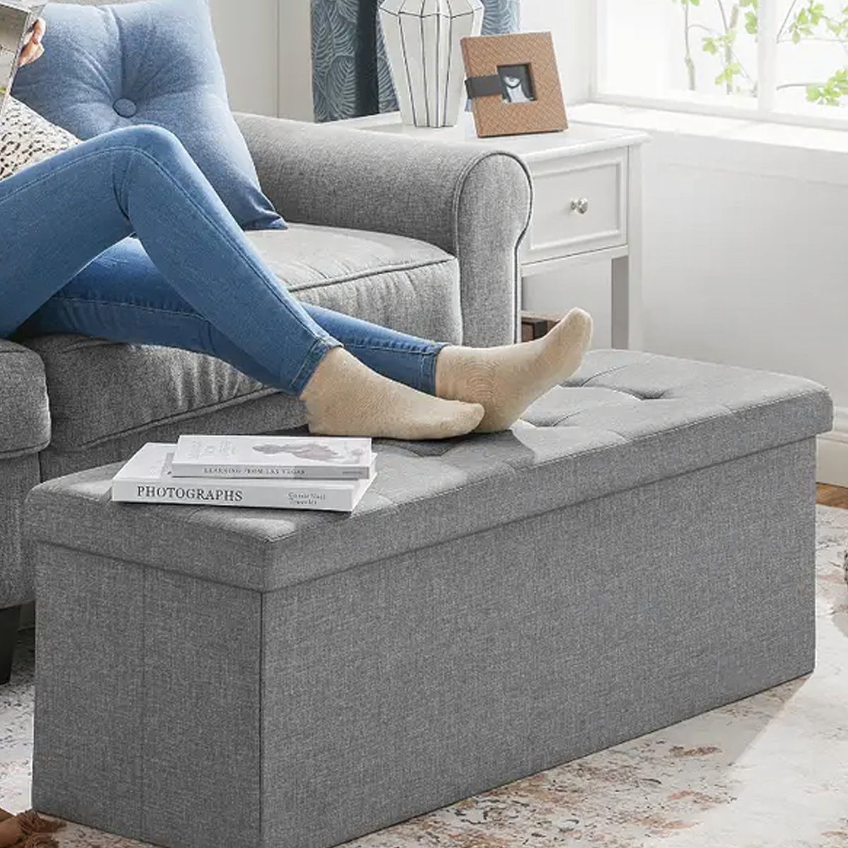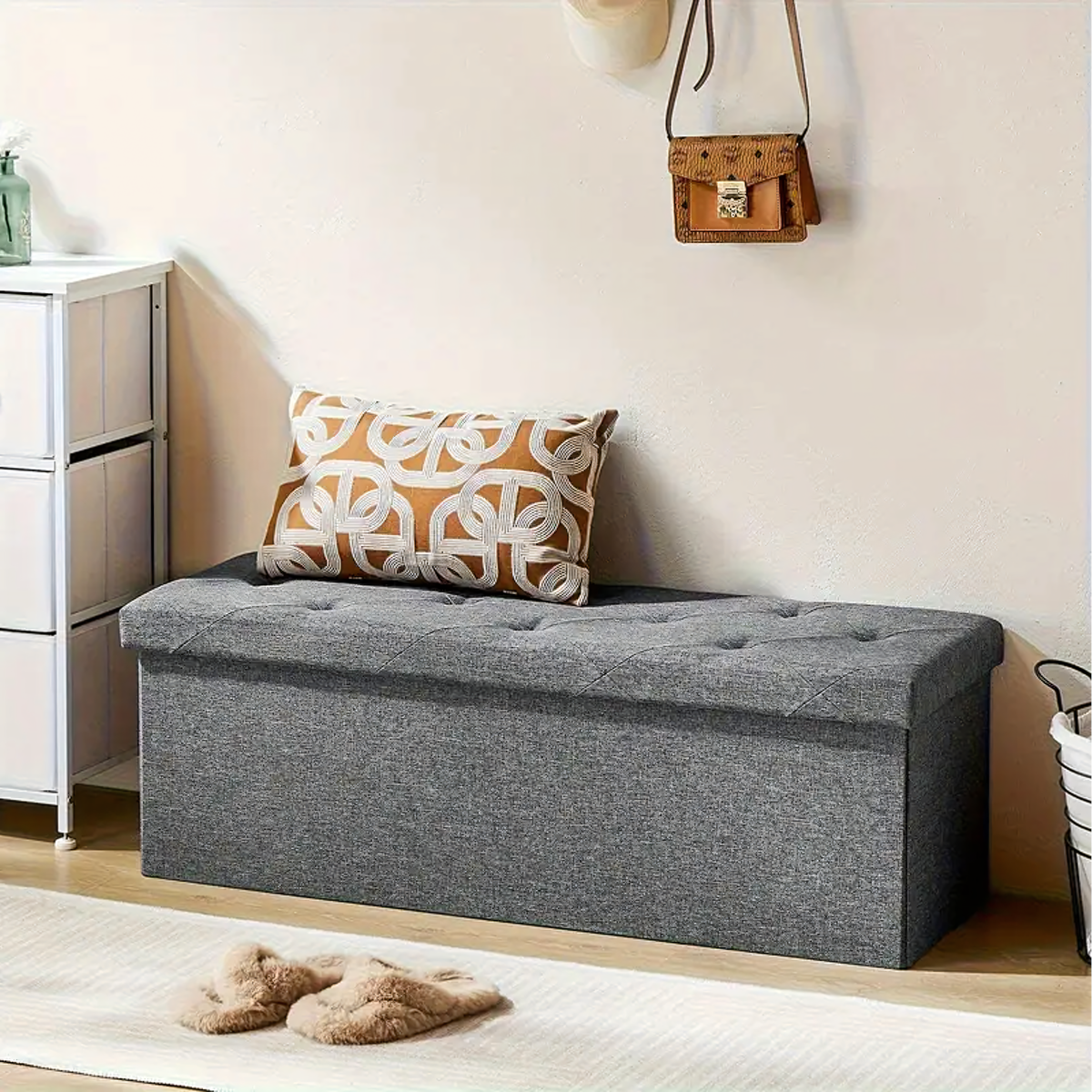 Funkcionāla un stilīga pufa 3 vienā ar plašu uzglabāšanas nodalījumu (80L), ideāli piemērota rotaļlietu, apģērbu vai gultasveļas glabāšanai. Stabilā MDF konstrukcija, apdarināta ar elegantu tumši pelēku audumu. Lieliski piemērota kā sēdekļa sols, kāju balsts vai mūsdienīgs dekoratīvs akcents jebkurā interjerā.
