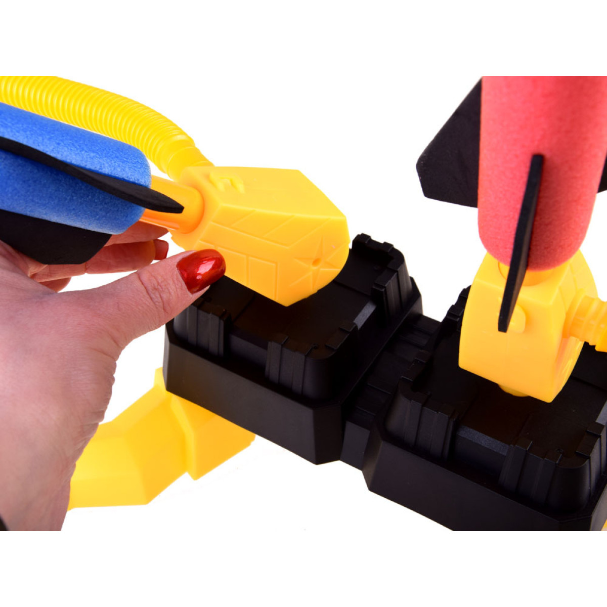 Palaišanas ierīce ir pilnībā izgatavota no plastmasas, savukārt mīkstās putu raķetes ir drošas, jo tās nesabojās mājas priekšmetus vai nesavainos cilvēkus. Ierīces mehānisms ir ļoti viegli lietojams. To var viegli izmantot arī bērni – vienkārši uzkāpj uz elastīgā gaisa rezervuāra, lai palaistu raķeti. Lieliska ideja brīvā laika pavadīšanai ārā ar ģimeni un draugiem.