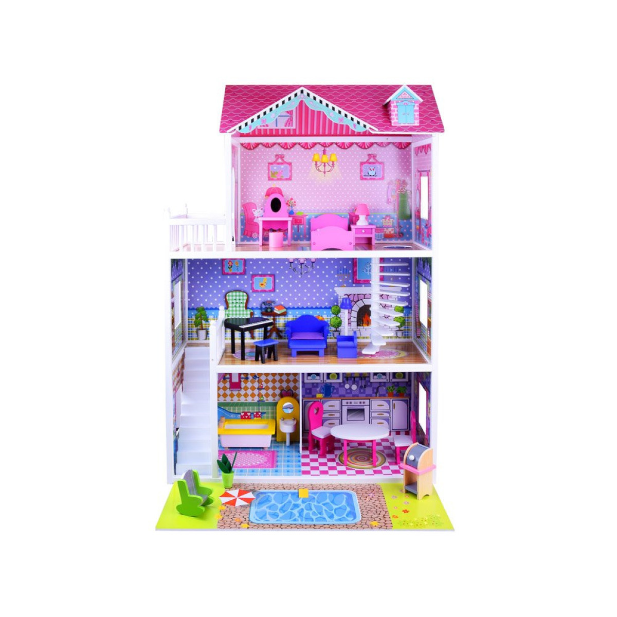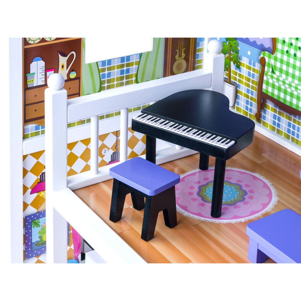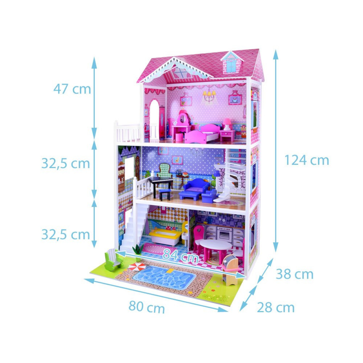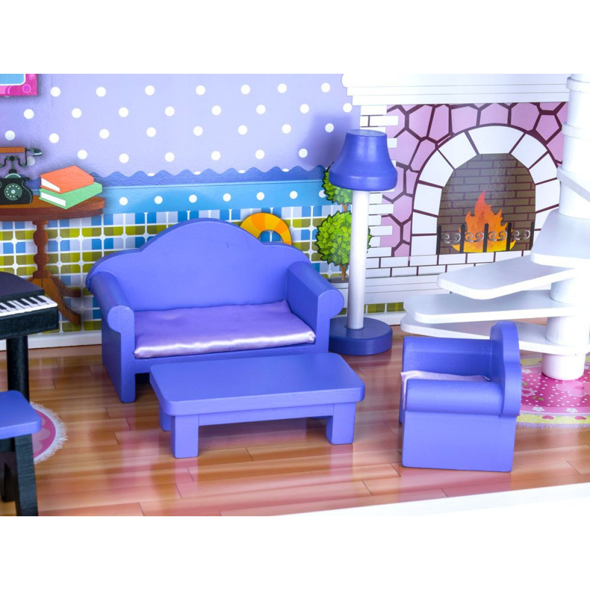 Burvīgs un krāsains leļļu mājas komplekts, kas ir katras meitenes sapnis. Trīsstāvu koka leļļu namiņš ir pilnībā aprīkots ar plašiem numuriem, kur var nepārtraukti pārkārtot skaistas koka mēbeles un aksesuārus. LED apgaismojums piešķir neatkārtojamu efektu, radot maģisku atmosfēru.