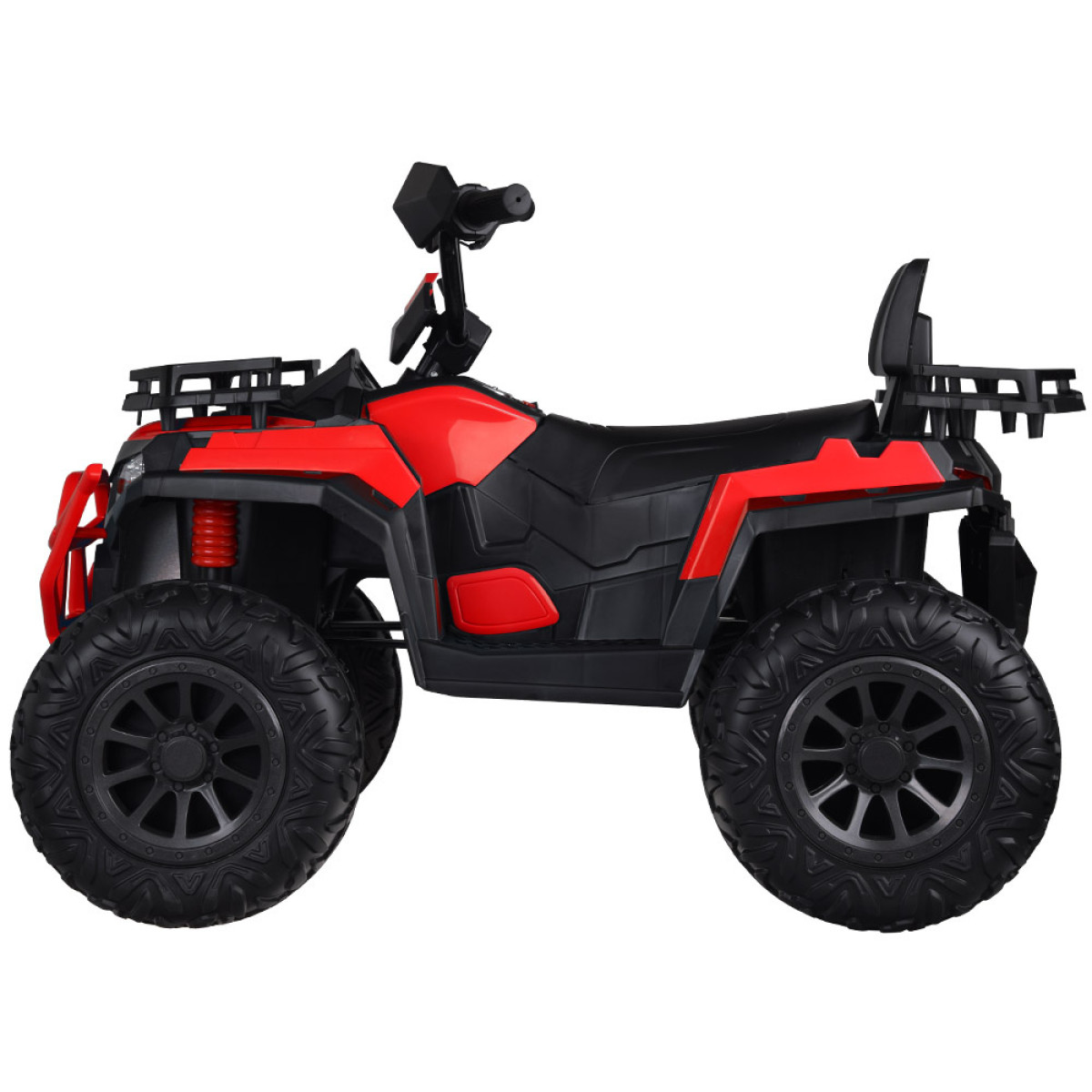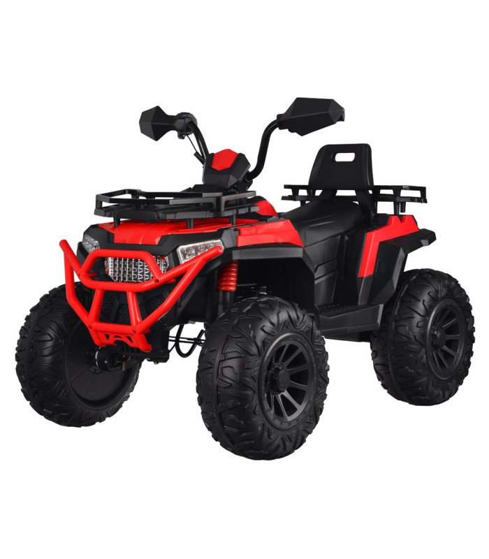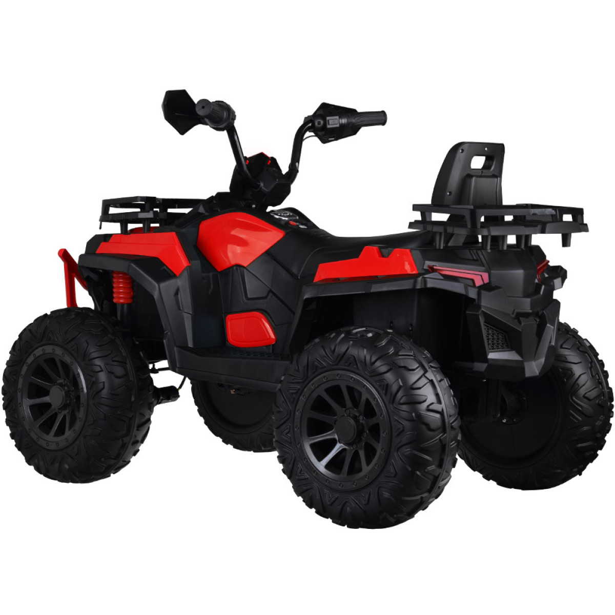 Lielais, spēcīgais kvads ar akumulatoru ir bērna sapņu piepildījums. Spēcīgs transportlīdzeklis uz lieliem EVA riteņiem un amortizētās aizmugurējās ass, kas nodrošina daudz prieka braukšanas laikā.