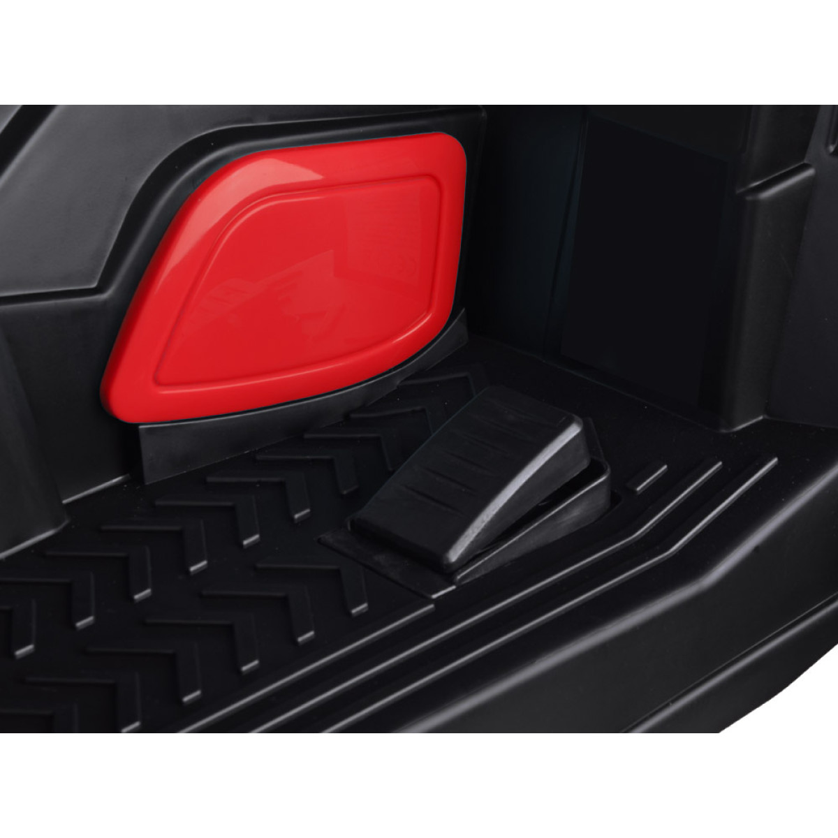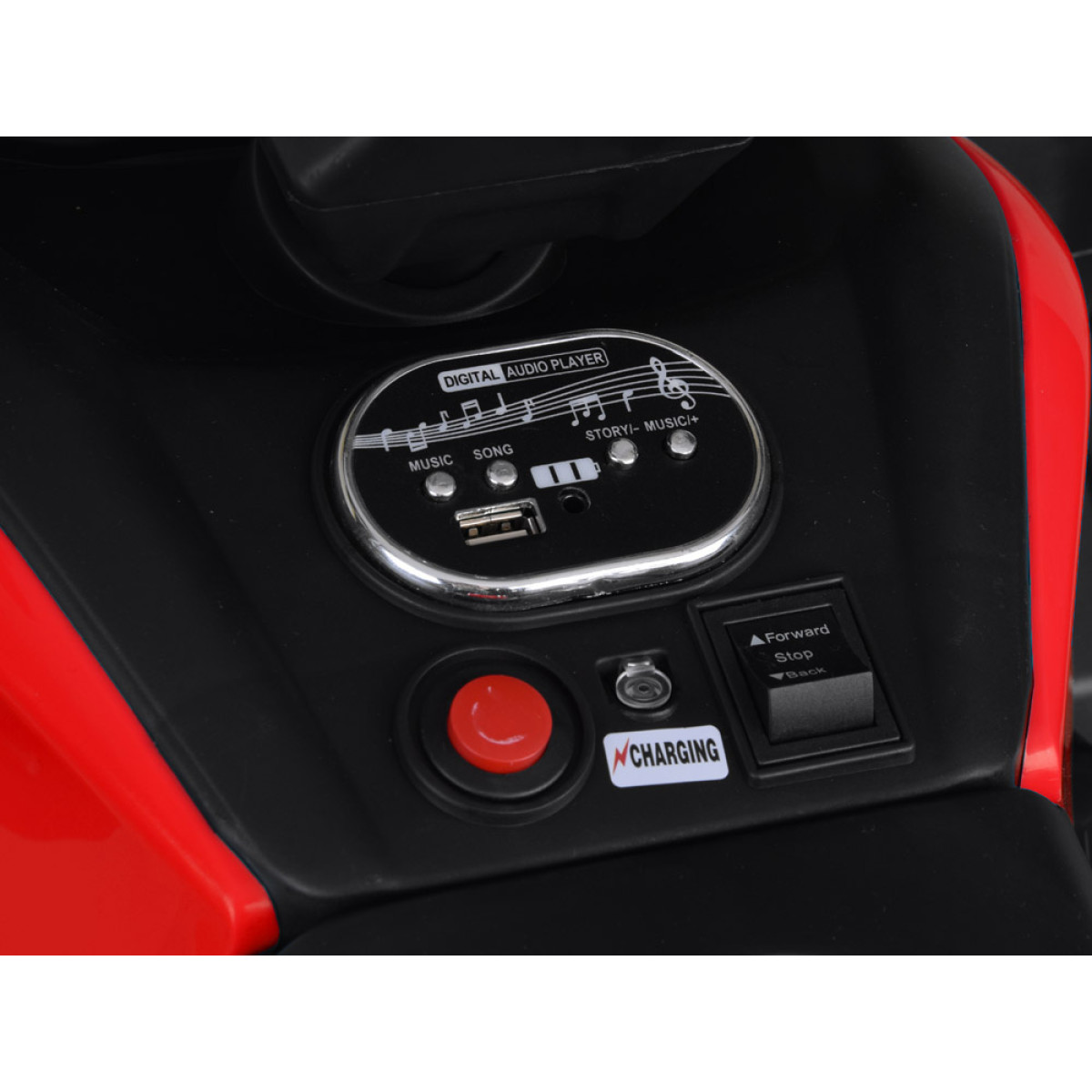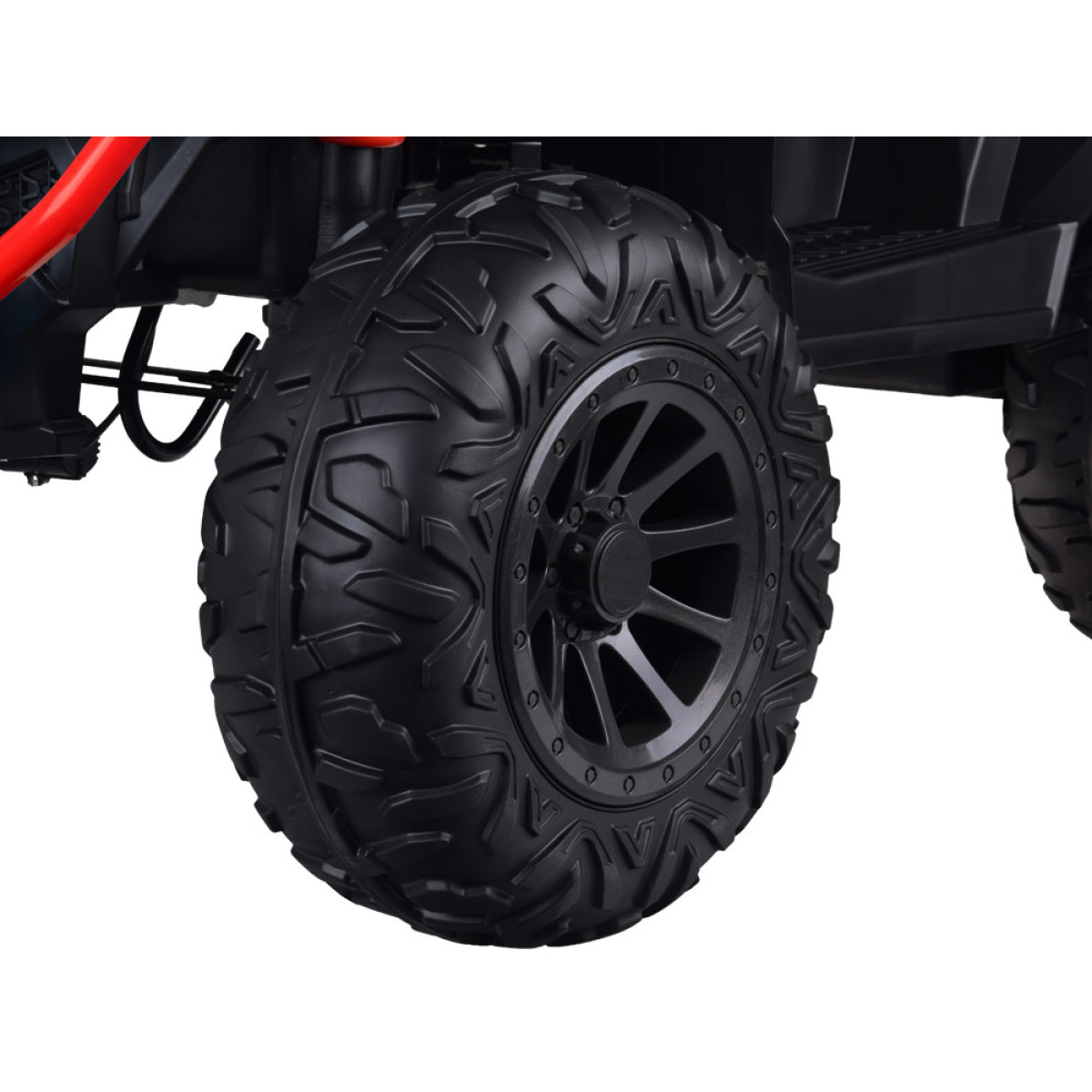 Transportlīdzeklis ir aprīkots ar 4 motoriem 12V 25W 18000RPM un akumulatoru 12V 12Ah. Gāzes rokturis ļauj vienmērīgi regulēt braukšanas ātrumu. Mazie bagāžnieki ļauj pārvadāt dažādus sīkumus, uzkodas vai dzērienus, lai nebūtu jāaptur spēle.