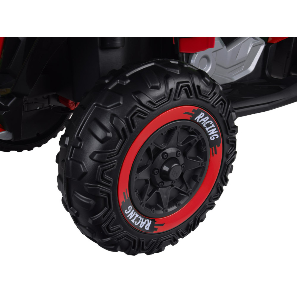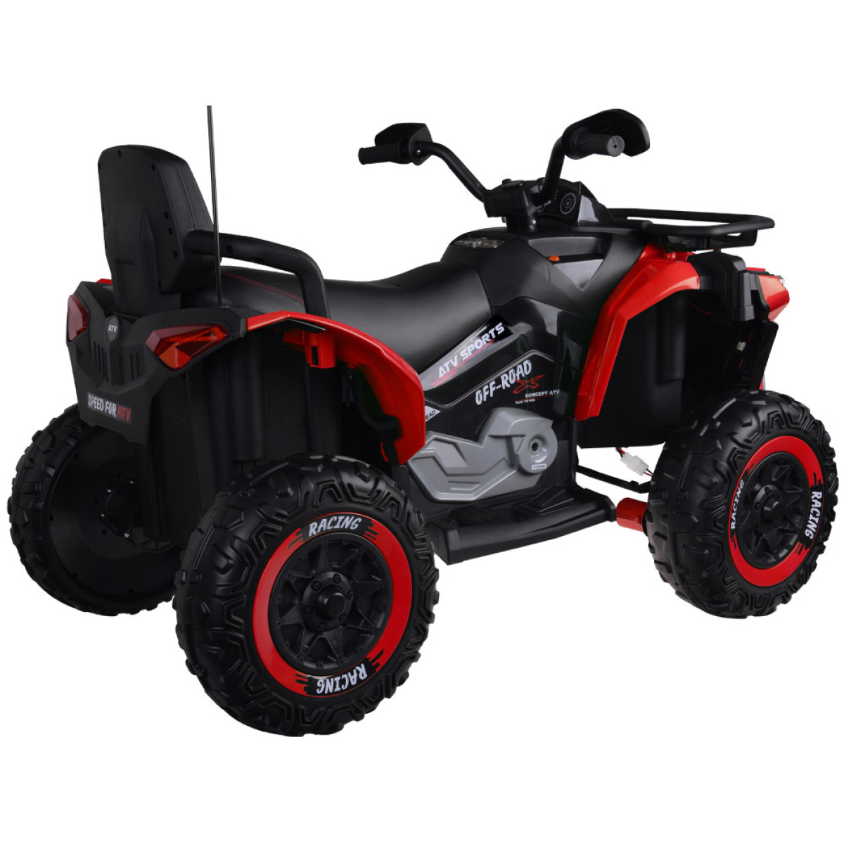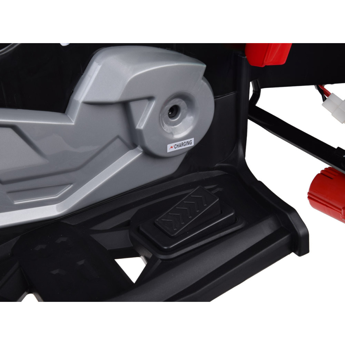 Blakus atrodas braukšanas virziena slēdzis uz priekšu – stop – atpakaļ. Modelim ir arī manuālais rc slēdzis, kas ļauj vadīt kvadraciklu gan manuāli, gan ar tālvadības pulti. Tas ir īpaši noderīgi vecākiem, kuri vēlas uzraudzīt bērna braukšanu un saglabāt kontroli, vienlaikus ļaujot bērnam apgūt patstāvīgu transportlīdzekļa vadīšanu.