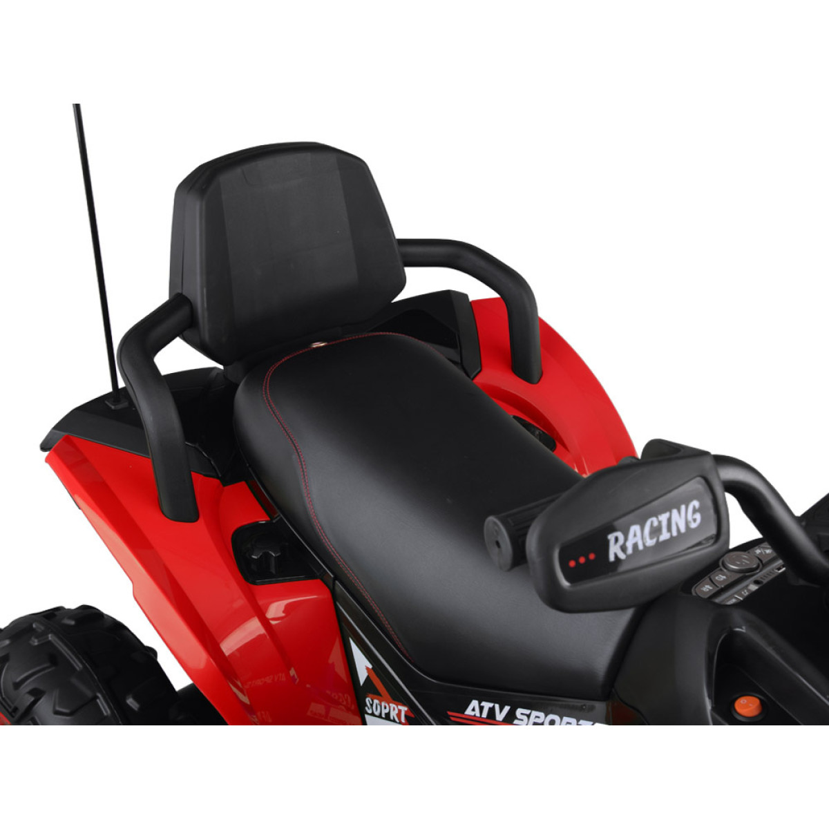 - sēdeklis no eko ādas – mīksts, ērts un viegli kopjams sēdeklis sniedz papildu komfortu garāku braucienu laikā un piešķir kvadraciklam stilīgu izskatu.