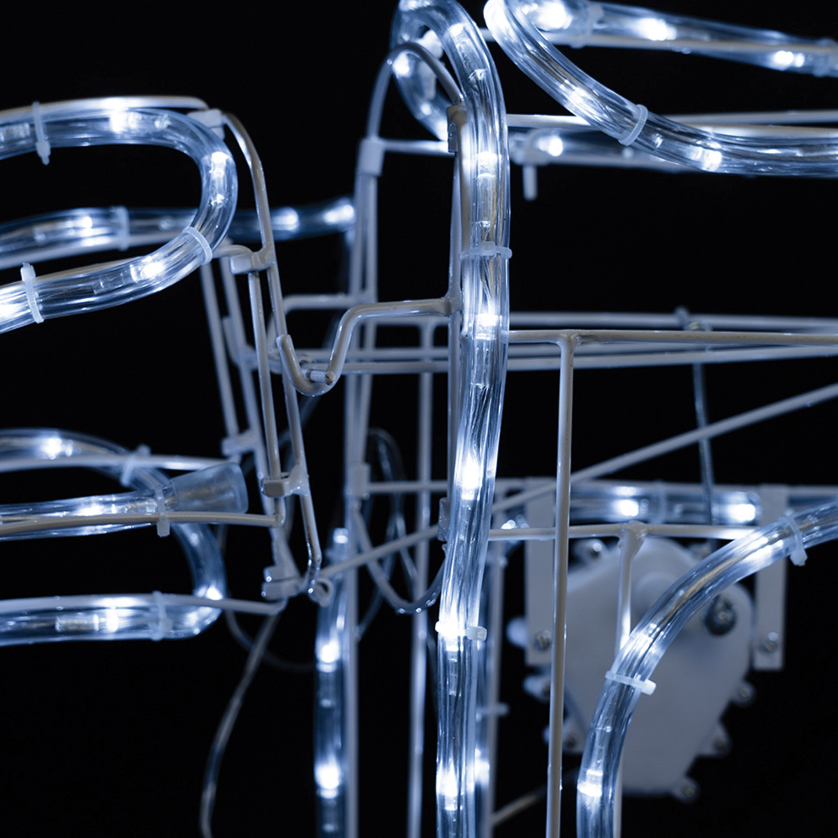Ziemeļbriedis izgatavots no LED caurules, kas uzstādīta uz metāla rāmja