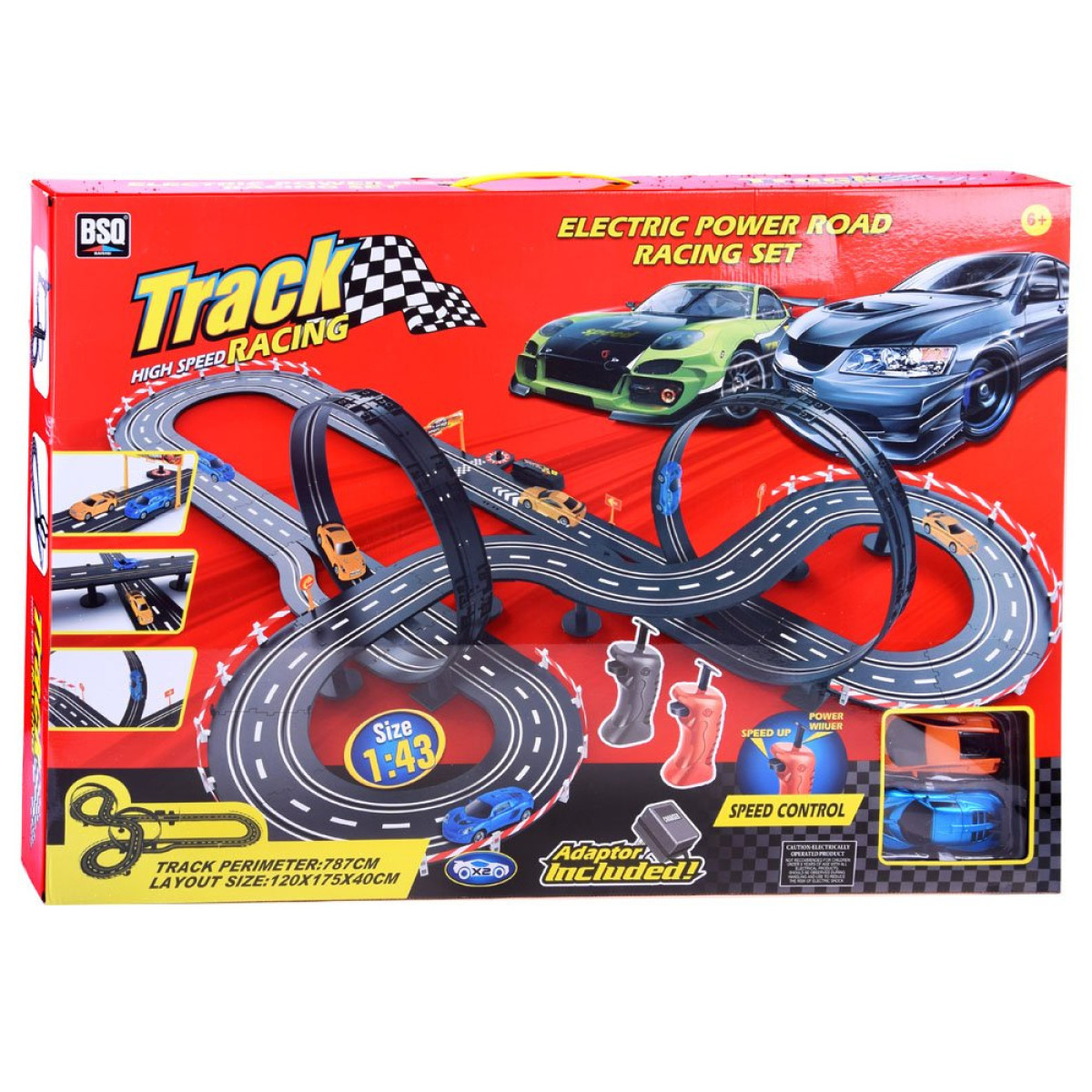 Liela sacīkšu trase + 2 automašīnas, 787 cm garums