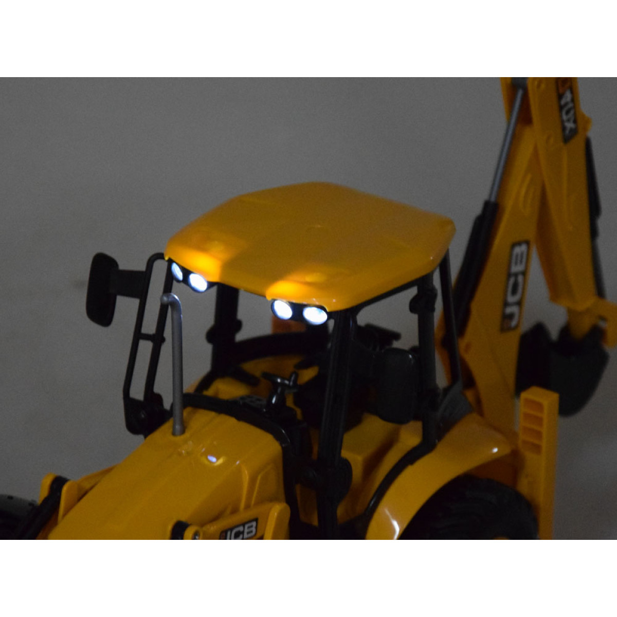 Mašīnas skaņas efekti atgādina tās darbību. Strādājot ar ekskavatoru, dzirdami skaņas efekti, un priekšējās kabīnes gaismas spīd. Transportlīdzeklis ir aprīkots ar gumijas protektoriem. Ekskavators ir aprīkots ar kustīgiem elementiem, buldozera funkciju un ekskavatora lāpstu, kuru var vadīt manuāli. Šis ir skaists modelis, kas izgatavots ar rūpību par katru detaļu. Lieliska rotaļlieta maziem lielo transportlīdzekļu faniem.